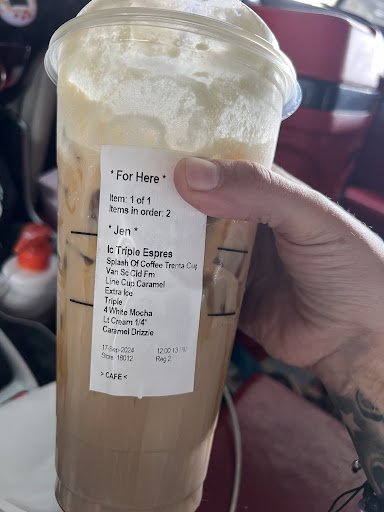 Read moreNot the first time my mobile order wasnt ready when the app said it would. Most times, it's being done after people on line who order normally receive their drinks. I may as well just come in and go on line to order my drink. I may even receive my order faster that way. I once ordered something they sold out of and came in to find an empty cup with a note written in sharpie on it that they had sold out and to go to the register. However that's not my problem. My problem is that you'd think they'd make my replacement order right away considering they sold out and didnt make it unorderable on the app. Nope, I waited about another 10 minutes until they completed all the orders in front of me. Even though I had ordered about 8 minutes before that.....they should really work on a better system for mobile orders because its beyond frustrating...