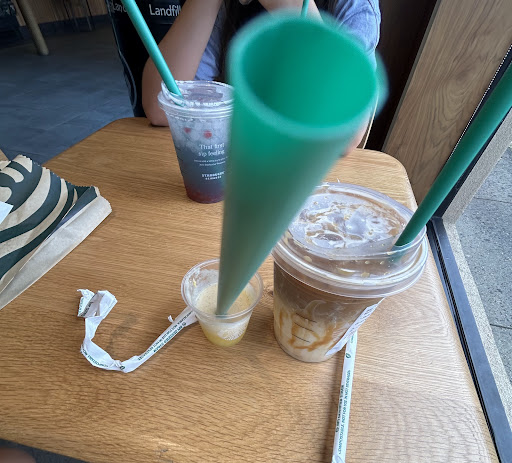 Read moreLol, over the years I've often been asked to write reviews about my positive experiences (car dealerships, etc.), and I don't mind complying...In this case, on my own without being asked, I just wanted to share a negative experience, which honestly, I've never done before: On Saturday night, 7/5, at about 8PM, I went into Starbucks with my wife and intended to hang for a bit with a couple cups of coffee. Unfortunately, the place at that point, looked totally neglected, with chairs having debris around, and tables that needed to be wiped down, & the counter with sugar & stirrers was filthy and totally uninviting to stay. And on top of that, my "short latte" had it's cover NOT put on tightly & appropriately, and when I attempted to open it, the cover fell off and the coffee poured out a bit and burnt my hand...Just walked out and we drank our coffees in the car. Might return, double check the cover, but certainly and obvee, no reason to stay...