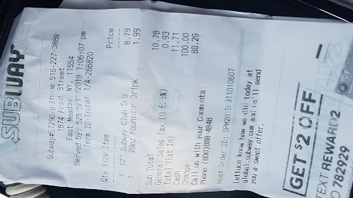 Read moreI stopped coming to this location in East Meadow on Front Street next to Margaritas because of one particular employee. I do not know her name but she has curly brown hair, wears glasses, and seems young. She is very rude, has no customer service and has an attitude every time I have come in there. Unfortunately my daughter wanted Subway today so I went ahead and hoped that she was not going to be there today. Bad news she was there! Once again this is why I don't come here anymore because she makes me feel as though I am bothering her and I am annoying her by coming in there and ordering a Subway sandwich. I always try to come in nice and to avail it does not work....