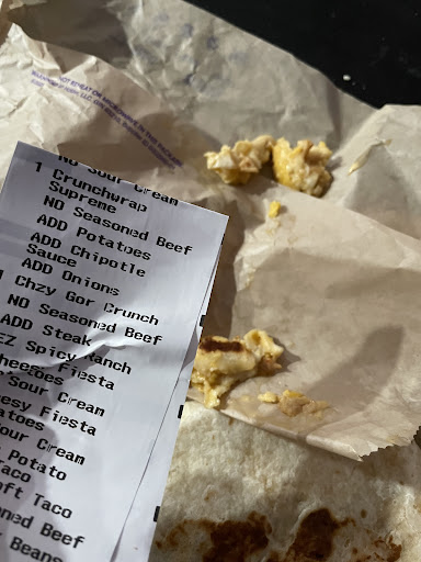 horrible place, go to the one in wantagh instead. number 1: my family is muslim so ofc we put no beef in our tacos, when we got home we realized there was beef in BOTH of my sisters tacos. number 2: they forgot our 8 fricking dollar cinnabon delights which we didn't realize until we got home. number 3: they put so much lettuce when i put easy lettuce, and they put 2 pieces of cheese when i put regular cheese. number 4: someone asked for the code for the bathroom multiple times politely and the workers just ignored him (his headphone things were off and they were standing about 1 foot from each other) and no, we didn't check the bag because we were in a rush because not everyone has time to sit and eat in this dump of a taco bell. number 5: the worker was giving me, a 12 year old, the nastiest look ever. like this was our first time going to this taco bell and it was horrible. the one in wantagh always gets our order right, has polite staff, is super clean despite the kids always in it, and is always able to accommodate the halal diet. getting this review from a 11 (almost 12) year old should tell you guys enough about this place. oh and number 6: the whole thing was $50 so they shouldn't have even messed it up so much. it's a shame i have to keep coming back to this review and adding more stuff because of the things i remember. i wish i was able to take photos except i didn't expect to be writing a review, especially such a horrible one as this. number 7: the drink station was a MESS. lids everywhere, no clean place to set my drinks down, whole counter was filled with coke and mtn dew and nasty lids. number 8: my crunchy taco shells were STALE. nasty food. number 9: the potatoes in my tacos were completely burnt, taste like charcoal. number 10: took 1 hour for them to make 5 tacos. with NO MEAT. number 11: printed receipt out WRONG. i swear on my dead sister and allah that i clicked no beef, pico de...