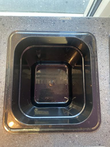 She then proceeds to put her hands over the sauce like I’m some animal and goes under the desk to grab a hard ball of sauce bags that were punctured and old and drops it on the counter.