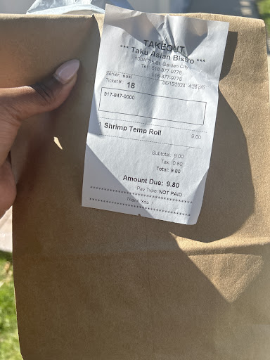 I discovered Taku this afternoon ( it was recommended by a volunteer working at Garden City Library ) , after a long , busy weekend , and what a surprisingly pleasant discovery it was ! I know of no small restaurant this cozy , well designed , immaculate and attractive ; the owners have made the most of a long , narrow interior . Country music also provided a relaxing change from the blaring contemporary pop chosen by so many establishments today . Prices are very reasonable , and my shrimp and chicken with peanut sauce was delicious . This dish came with a generous portion of vegetables mixed in , making for a genuinely complete dinner . The charming owner and waitresses , all from Fujian , China, were exceptionally polite , attentive and cordial ; other restaurateurs could learn much from a visit to Taku . Did I leave...
