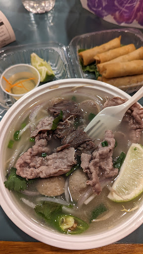 So I came in around 6:15, I placed an online order and decided to just eat it in the restaurant instead of going home. The staff was super hospitable and everything they could to accommodate me. I ordered the pho special and the six-piece spring roll. I couldn't really put into words how much I enjoyed it, I did tell them it was fantastic but I think my actions of eating every single little bit and slurping up all of the broth spoke more than my words could.