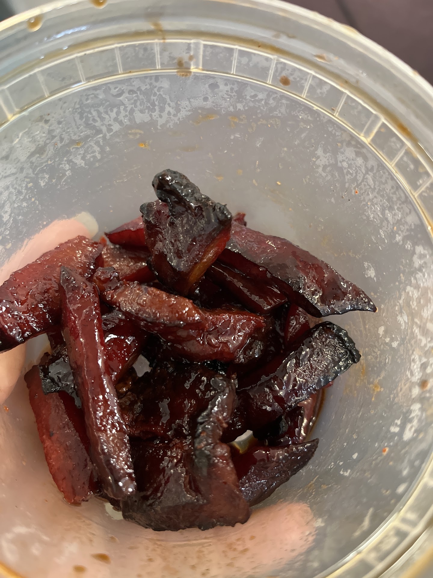 -- The Service -- As I mentioned before they were very rushed. The people waiting in line for their food were getting impatient and one of the ladies on the kitchen kept saying "your food is ready" to anybody that asked. Only that they all had to wait at least 10 more minutes. They only offer you a plastic fork with your food but this was the flimsiest of them all. Maybe is because my meat was very dry but the fork would bend all ways refusing to grab any meat. I asked for a plastic knife to try to cut my beef jerky to a more manageable size and the cashier told me they had none, that I could get some from the business next door.