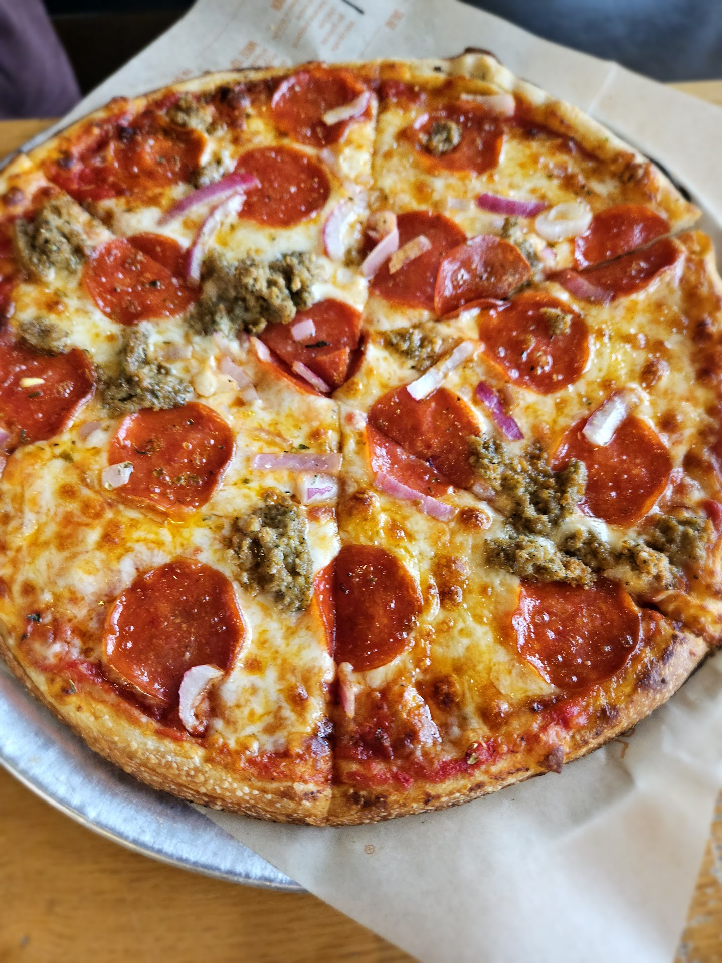 Read moreThe customization available for pizza sauces and toppings are very reminiscent of the layout for options like you would find at a chipotle. When you start your order, you can advise on the sauce, toppings, and other fixings. In my case, I made a pizza with a creamy white sauce. I added mozzarella, goat cheese, ricotta cheese, sausage, bacon, chorizo, red onions, and garlic. That's a mouthful but trust me it was very delicious. The crust was crunchy and thin with a little bit of extra crunch at the very edge. Not burnt, just more toasted, which I loved. The staff was very friendly and walked me through the entire process. It didn't take much time for the pizza; approximately 7 minutes if I'm not mistaken. Two people can share a pie but I can easily see someone devouring a pizza on their own. Either way, you have the option for dining in or take out. I did also notice a section where they had 'to go' orders ready, so that seems to be an option as well. In this instance, I dined in and also drank the blood orange lemonade, which was very delicious. The blackberry basil juice was good, but not as good as the lemonade. For those unsure of options or being that there are so many to choose from, they do have some preset favorites on the menu above. A good choice to review if in case you are overwhelmed with...