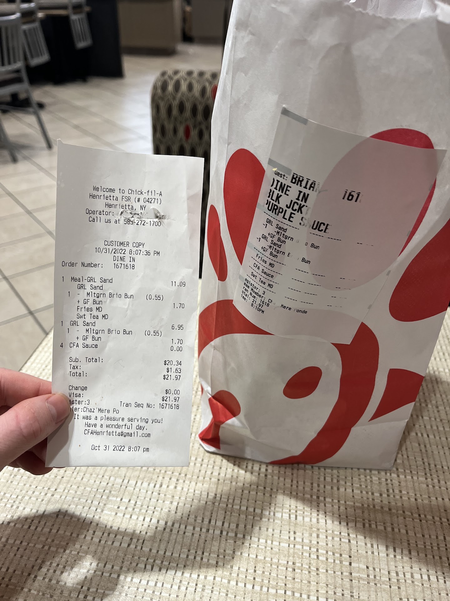 Read moreI should start by saying I am reluctantly gluten-free. There were still customers in the lobby, so I tried to go in first, and it was about 5 min before the lobby closed for the night. I told them l just wanted to grab a take out real quick and didn't want to go through the drive thru with my trailer the girls washing windows told me I couldn't and gave me some sass. I would have just left normally, but it was the last place open with a gluten-free option, and I had a 1½ hour drive home. ☆They did have a gluten-free bun and have gluten-free grilled chicken. ☆They didn't serve it as it was supposed to be topping in a box and bun individually packaged in plastic. ☆They overcharged me $2 for the initial meal. I ordered an original extra pickles gluten-free, so with the prepackaged bun and grilled instead of fried chicken(I miss fried chicken) ☆They put in a deluxe with baccon meal so it cost the extra $2 then of course I was charged for the bun which I expected why does gluten free have to be so hard everywhere. The long and the short of it, the chicken sandwich was okay. The bun was meh, and the service was awful. Next time, I'll go without if I can't go to AURTHOR JAXON'S THE FOOD IS AMAZING AND THEY DON'T HASSEL YOU OVER...