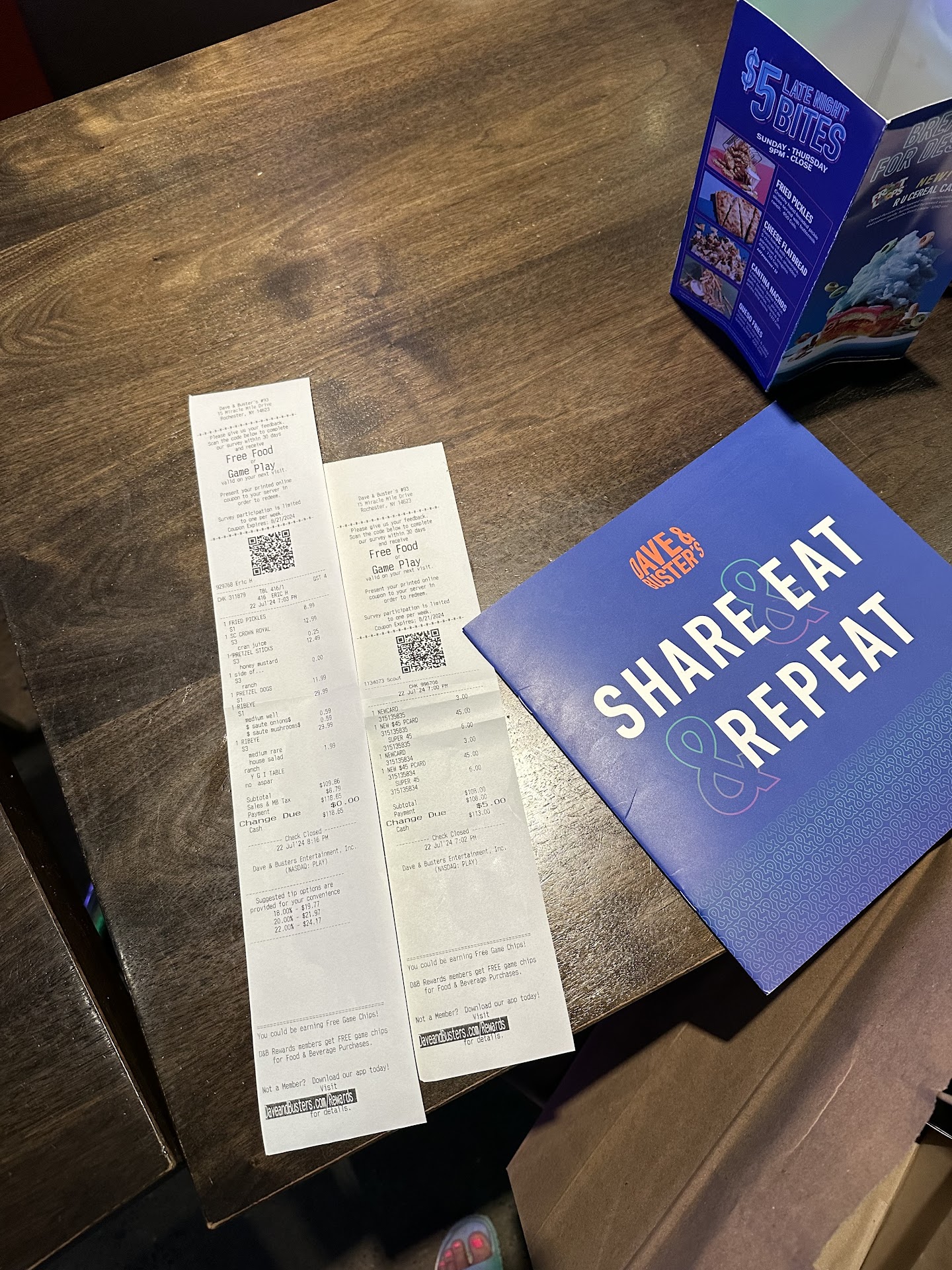 Ā Ā Ā Read moreI decided to end my daughters birthday fun day with dinner and games at Dave and Busters. We will start with the table. They put myself , my friend and 4 young girls at a table right by the doors. We spent our entire meal freezing from the cold wind down our backs and within 2 minutes our food was cold. We are sat at this table and within .5 seconds our waiter was asking for our order. I hadnāt even had a chance to pick up the menu. I ordered an app for my friend and I and one for the kids. They were the same appetizer, and were delivered almost 10 minutes apart. While eating my cold dinner, several ālargeā guests had to walk by our table to leave as we were right by the door and there was no room so they literally walked over my table and our food. Then the workers came and swept garbage all around my table while we are actively eating. At the end of the best birthday dinner ever, I wasnāt even given a receipt , the waiter came over with his machine and announced to the table the total of $132.00 dollars. No discrete handing off the check, an actual announcement. No paper checks but could give me a paper receipt and wanted to stand there and watch me while I figured out his tip. The starting recommended tip amount starts at 18%! I work very very hard for my money and the food and service were not even close to satisfactory. He still got a $20 tip that he most certainly didnāt deserve. We then go to play games. They have a ādealā when you buy more but told me they couldnāt split it between 4 cards. The cheapest package was $25 and I was told it would last 15 minutes by the worker. If the kids wanted about an hour of play time, she suggested $45 cards for each. Mind you these are the same games at many arcades including Laserton and the āprizes ā are cheap little toys. If I bought them it would have been $180 on top of the $150 I spent. So over $300 for awful service, cold food and an hour of cheap games to win cheap prizes. We left without playing and it honestly ruined the end of our great day. We would have had a better experience at McDonalds. I will never again go there or recommend it to anyone. Absolutely horrible experience. We went to the Escape room and Lasertron before we went there and those two places were fantastic by far, and were reasonably priced for the experience . Donāt waste your money or ruin a special event by choosing Dave...