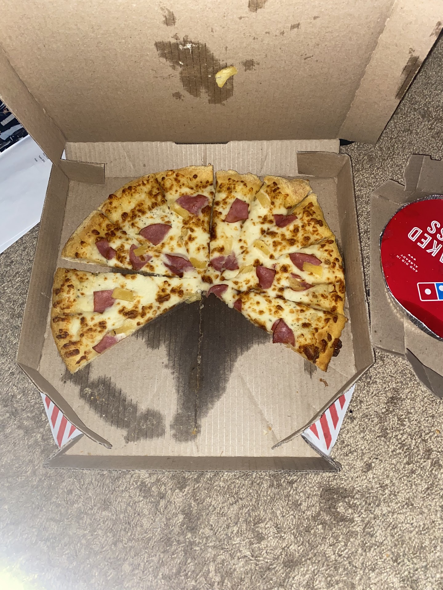 Read moreWe order from work - and with several staff who have gluten free needs, the GF pizza from Domino's is wonderful and the toppings are generous. This is a definite plus. the other pizza's are a hit too - my coworkers are happy with the crust and taste of today's Domino's. Would have given you 4-5 stars except for the downside... as other reviews have noted, the tracker is off.. arriving much later than promised or shown by the tracker. When I called about our late delivery I was told they had a large school order and there was backup due to it - perhaps letting your customers know there is a delay would be helpful? This is difficult when staff are basing their lunch breaks on the anticipated arrival time. If you want to keep our business... a site with approx 400 employees .. the delivery time needs to...