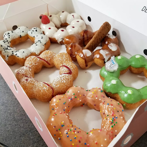 Ā Ā Ā Read moreThe place was a little dirty and run down looking. But i was so excited seeing this place. I saw videos all over instagram of the hot dog and donuts. Boy was it a disappointment. I wanted the pistatio but it was decorated with what looked like fruit loops, i dont know why. Why not pistachios? So I got the triple chocolate becauce i love rocher chocolates. Maybe thats there thing because they all decorated with cereal. The donut had good texture but the chocolate topping was very thin and melting. And unfortunately it was ruined by the after taste of chicken. I assume it was a dirty frier. I also got the regular potato hot dog. You bearly get a tbsp. of ketchup and it kinda lacked flavor so you really needed it. Then i noticed a very creamy white filling I didnt order it with cheese and it didnt taste or feel like cheese. It wĆ s fully cooked so it wasnt raw batter. It kinda looked like mayo, but i dont know. It grossed me out, but I finished it because I was hungry. Maybe the cheeto or another would have had more flavor, but the creamy white "stuff" was too weird to try again. Plus it was over priced. I can see why business was so slow at lunchtime. Its also in a horrible location. Gps was not helpful in finding the place. The cook was friendly that brought me my dog out. But cashier made me feel like it...