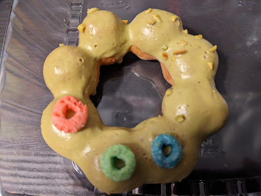I'd tried something like this outside of NY State before and enjoyed it, so I decided to give this Rochester Mochinut location a try. As some reviews point out, this location does have a bit of a rundown appearance. On the upside, service was fine. The donuts themselves are more expensive than at most donut shops though. They're also extremely colorful, which is sure to be appealing to kids but doesn't do much for me as an adult. Adding additional colorful toppings that don't complement the glaze flavors makes little sense to me. Fruit Loops on top of pistachio glaze - why? The actual glaze flavoring itself could have been more authentic too. But, hey, it's a bright, colorful donut, not a fancy pastry. Unfortunately, the taste suggested that they allow these things to sit around for too long. What I ordered wasn't stale. But, it wasn't very fresh tasting either. Perhaps this type of donut has an extremely limited shelf life? Based on other reviews, if I had come at a different time of day when the donuts had just been made, I'd likely have had a different experience. But, if this is one of those food items that needs to be fresh out of the fryer to be enjoyed, that's a problem. It's too much trouble to try to time that out. Other donuts tend to hold up well enough throughout the day, such that it's safe to buy and eat them in the afternoon even though they were cooked early in the morning. Not the case here it seems. I'm not really trying to discourage anyone from giving this place a try. It wasn't some horrible experience or anything like that. So, if you're curious, give it a go, especially if you have kids who like sugar and...