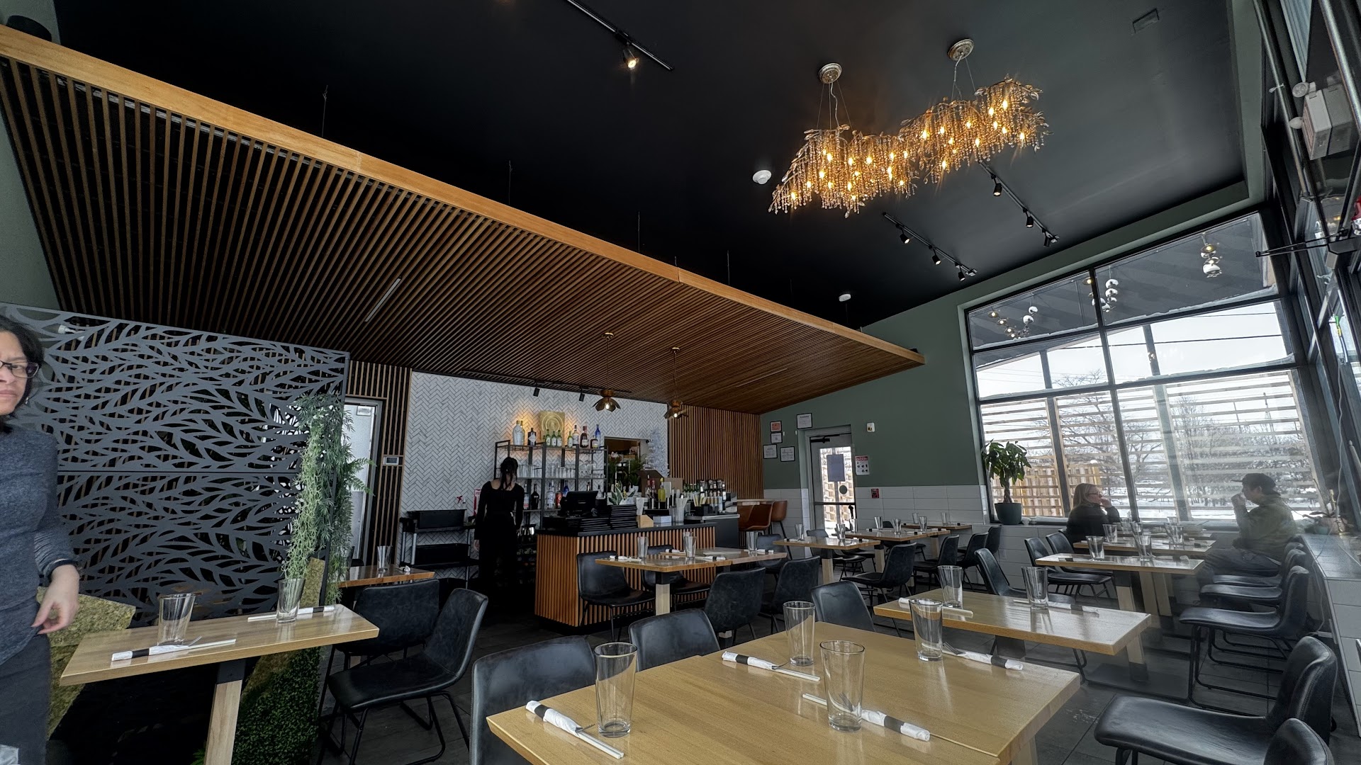 Atmosphere is great. Hip, clean and modern. Seating is limited indoors but there's a patio for warmer months. The look of the restaurant is modern and very nice.