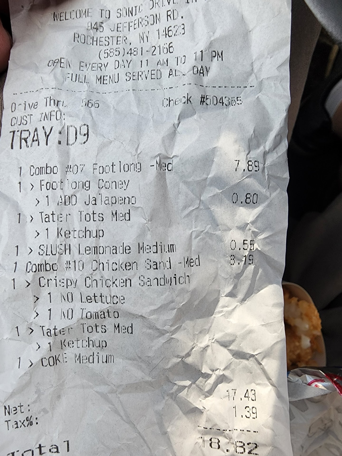 I have given the Jefferson Rd Sonic 3 chances. They failed every single time. 3 strikes and you're out.