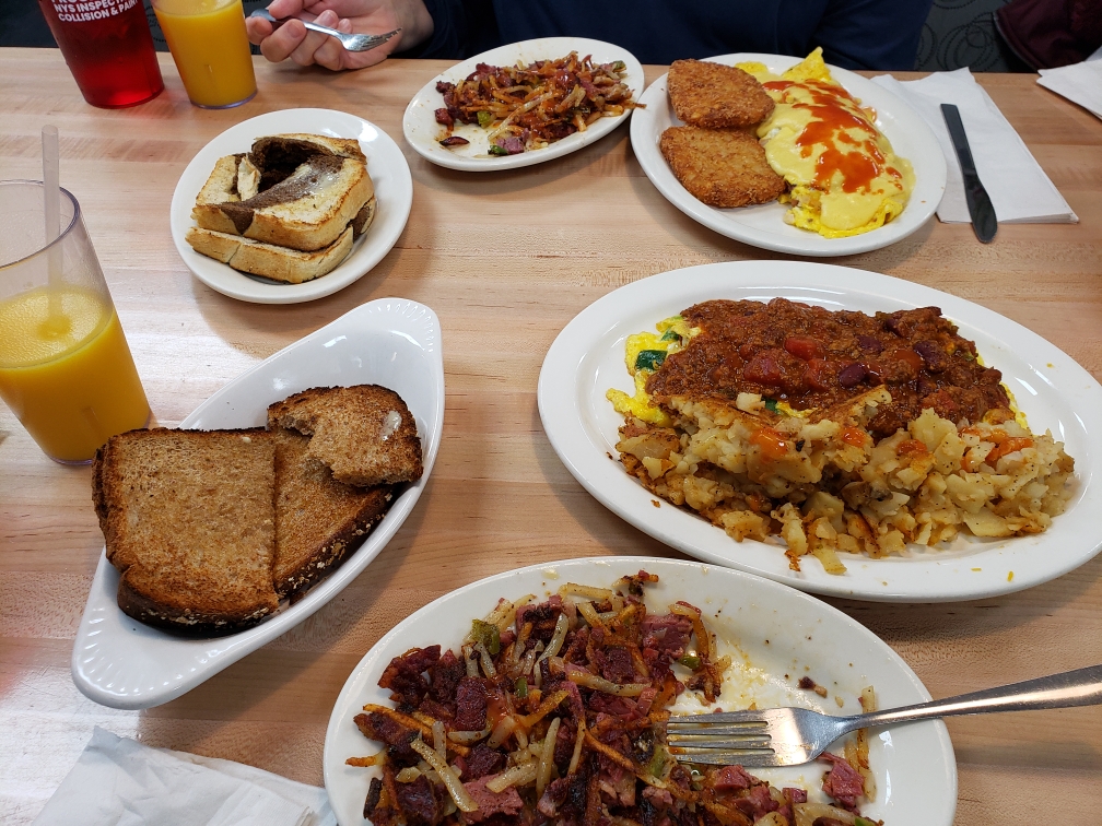 Shew this is going to be a long review but please bear with me. My family of five and I wanted to go out for Saturday breakfast, when we found the only local Cracker Barrel to be completely packed, we decided to look for a local breakfast place, and we found The original Steveās diner. This diner is located in a shopping strip, So as you can imagine, itās relatively small. Upon arrival, it was around 11 oāclock, I entered and was told that the wait time was about 20 minutes, however, there were several individuals outside waiting to be seated. It was a little over 20 minutes before we were sat down, and we were not immediately greeted by our waiter. When our waiter arrived, He was quick to get us our beverages but then disappeared for quite some time before coming to take our food order. We witnessed several tables seated after us promptly greeted by their sever and then receive their food before we did. From the time we were sat down until the time we received our food it was roughly 40 minutes. iām not sure if we had a new server or what because the other servers were moving rather quickly and turning tables, a few individuals who were seated at the same time as us had already left, and the table was reset before we even got to finish our meal. All that to say, our server was A very nice man, and he kept our drinks full.