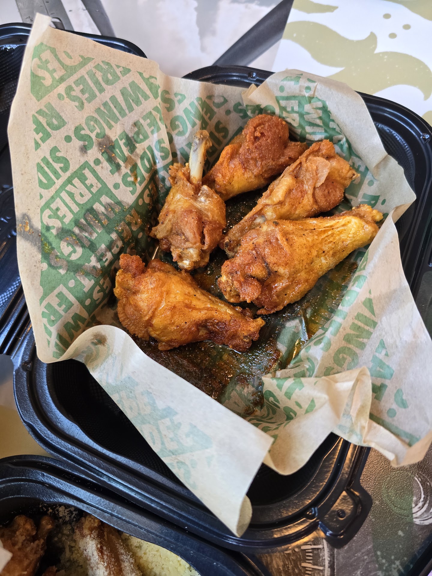 Ā Ā Ā Read moreTook my fiance here after her surgery. When we first walked in, we were greeted by someone I assumed was the manager. He was very nice and all the workers there were. The woman at the front was very patient with us as we asked a few questions and changed our order. We were informed right off the bat of the wait time for crispy wings, which I do appreciate. We waited and got our food within the time frame. We went with the combo meal for 2. It came with 15 wings fries and 2 drinks. I will go over the food