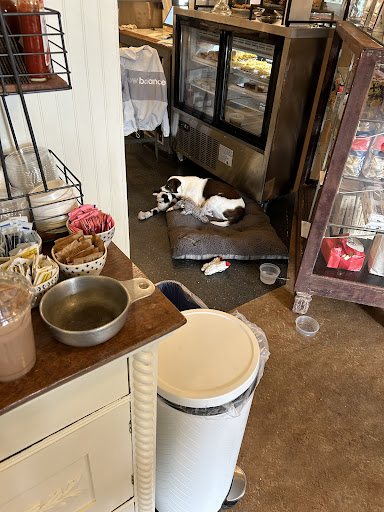 Stumbled upon this cute little bakery/sit down eatery about a year ago and every time, the owner (I think the older man is the owner?), is always super friendly and attentive. Today, we sat and waited only about 10 minutes for our breakfast sandwiches and he gave us two free freshly baked cookies🥹 There’s a comment below that mentioned the dog, and while I was also wondering about him the first time I came here, he never wanders into the kitchen or the sitting area, so your food isn’t ever actually near the dog. The prices of the shelf foods are a little steep because it’s the best quality. The sandwiches/bakery items/kitchen foods are very reasonably priced. Overall, this is definitely a great place to stop by if you’re in this little town- you won’t be...