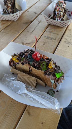 I came here for the famous on Facebook ice cream tacos. I remember this place from the 90s and early 00s. It looks as if nothing has changed. I think it is a little run down. The window to order was really tiny, and you couldn’t see inside. The menu is okay, kind of small. The actual ice cream is good. We got S’mores Taco. It was $12. The picnic tables are small. Not a lot of...