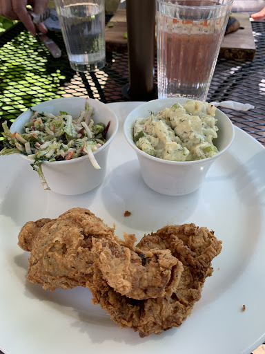 TL;DR - Overall I say this place is worth a visit and has great potential. Understand it is in its soft opening phase, has room for improvement but so far has a flavorful, thoughtful menu. First visit my friend and I had the Seoul Sister with sweet potato fries and the Big Bird chicken sandwiches (pictured), fried green tomatoes, and two desserts, the pecan pie & brownie. These chicken sandwiches are pretty hefty, enough to save for later. The Seoul sister was a nice attempt at a Korean styled chicken, did not quite hit the nail but flavorful nonetheless. The sweet potato fries were undercooked but still edible. The desserts were okay, not really worth it. Appetizer was good, not a huge fan of cornmeal but my friend enjoyed it. I realized the next day at lunch when I went to have my leftovers that my sandwich had been undercooked, a huge no no, but I gave them the benefit of the doubt. It was their literal first day of soft opening.