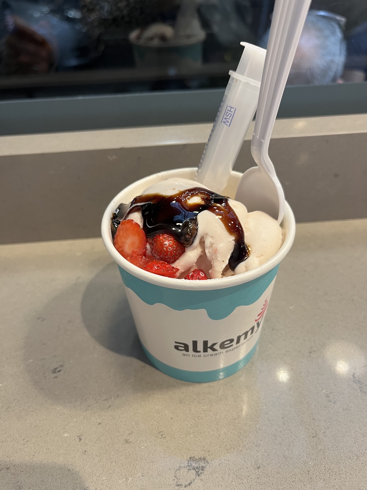 Read moreThe tastiest, freshest, all natural ice you will ever have! It’s not only the best in Huntington village, but one of the best on Long Island. Newsday agrees and notes “(the ice cream) is made from scratch using local dairy, organic fruit, vanilla from Madagascar and chocolate from Belgium”. The vanilla beans are from Uganda. There are no artificial ingredients or gums added. It’s fun to watch the ice cream made in a minute right in front of you. The staff is pleasant and accommodating. The place is super clean and has outside seating in addition to two levels inside. My wife and I tried roasted strawberry, vanilla, and dark chocolate. We’ve never had ice cream this good before. The flavors burst in your mouth. The dark chocolate seemed to have 4 or 5 levels of joy dancing on your tongue. The roasted strawberry was well-rounded and full-flavored without the cloying sweetness that one often tastes. And just plain vanilla was not plain at all, again multilayered in dimension. Prices are not unreasonable. A scoop (actually two big ones) is about eight bucks and their various sundaes are around eleven dollars. Run not walk to Alkemy. You...