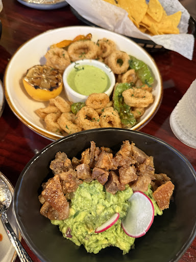 We started with the fresh guacamole (pro tip: add the chicharrón for an amazing crunch) and the fried calamari with shishito peppers, which was perfectly crisp and addictive. For mains, we had the carne asada, pulpo (octopus), and shrimp tacos, each packed with flavor and beautifully presented. My personal favorite was the Mahi Mahi aguachiles, fresh, tangy, and with just the right amount of heat.