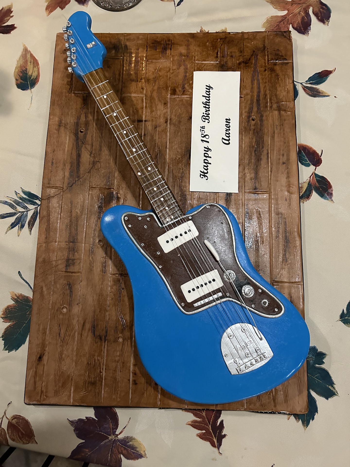 I wanted a cake that looked like a Guitar, not any Guitar but his favorite guitar. That's what I wanted, that was exactly what I got. We could not have been happier with the cake Catrina produced. The end product was more a work of art than food. Not to say the cake was not delicious, cause it was amazing.