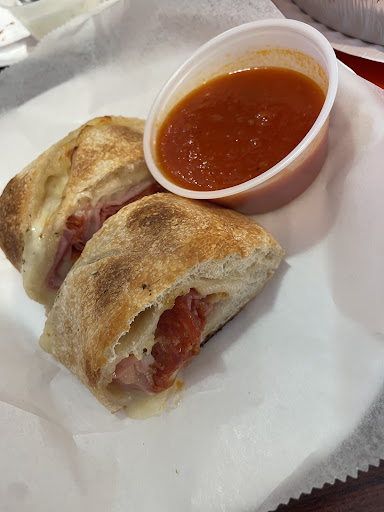 In less than a week, I returned with a friend to eat here for lunch. We started with slices, (2) Hot Honey Vodka Square with Pepperoni, and we split (1) Chicago-style with Pepperoni and Sausage. While we ate those, we patiently waited for our kitchen orders. Shrimp Parmigiana Hero with Vodka sauce and an order of (8) parm garlic wings. The hero was fantastic. Bread was crisp, and that vodka sauce is super flavorful. The wings came out super hot, and they were really flavorful. It was like, Garlic Knot wings, tbh, so it was surprisingly delicious alone, without any ranch/blue cheese. As if we didn't order enough, the owner graciously surprised us with a complimentary stromboli.