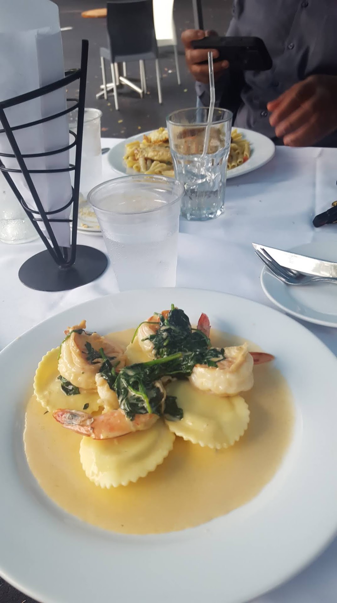 For Entrees, we had a lot of different dishes to choose from. We had the Mist Lobster Roll which was superb. Fresh Lobster NOT frozen (we met it before we ate it) chopped up with celery, tomato and that BOSS of a Lobster sauce! It came with these fries that were out of this world delish; freshly cut daily and fried in a Truffle Oil. The owner himself is very attentive and personally checks on every table, a testament to the family environment and his love for his customers. He brought us some Pinot Noir and Sauvignon Blanc to go with our meals, A+ for the personal touch! My WIN was the Sesame Crusted Yellowfin Tuna - you could have fooled us that it was fish! Unreal; bursting with flavor from the Marsala, Shiitake Salsa and Ginger Soy. Sweet, tender and fantastic! The house favorite Pecan Crusted Tilapia was ginormous and tasty. The Chicken Parm was a WIN (it was DELICIOUS) and the Marinated Skirt Steak was a very close second for me... cooked me a PERFECT well-done skirtee and the chimichurri sauce was on point! The chef surprised us with these Filet Mignon Skewers to die for... meat was soft, tender and the sauce was BOSS; sweet, tangy and bursting with flavor. Peppers and onions were well-cooked not burnt and the sweet boldness of the peppers really made the flavor pop!