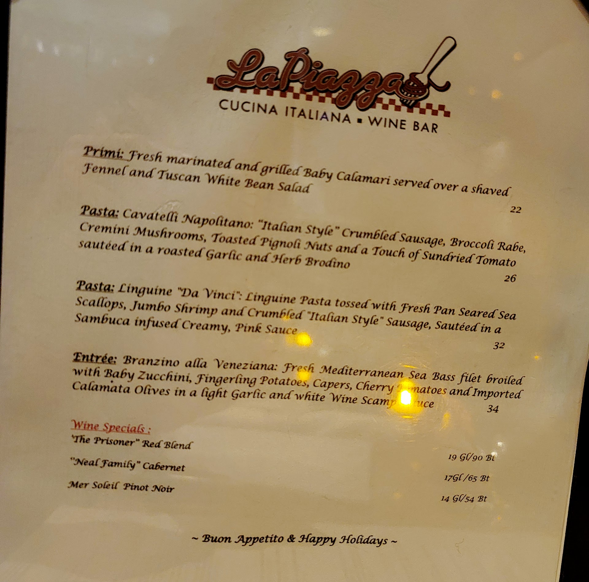 I chose LaPiazza to have an early Sunday dinner with my family that consisted of 6 adults and 2 children under the age of 5. When I called to make reservations they wanted me to give them a credit card so if we cancelled they would charge me $160.00 which is $20.00 a person. I thought this was a bit much on so many levels. First to even charge that and especially for them including the 2 children under 5! Knowing kids can get sick at the drop of a dime or a family member might cancel due to unforeseen circumstances I didn’t make a reservation for these reasons and just met up at the restuarant. When we got there, there were only 2 patrons sitting at one table, the rest of the restuarant was completely empty. I was shocked that I was even asked to make a reservation. Waiter was good but misguided us on getting the fried calamari. He said 1 order would feed 2 maybe 3 people. We over order based on his recommendation which cost us more money and had to take it home which we didn’t prefer doing. Then the bill comes. The very FIRST line on the bill is their 20% gratuity of $71.72. Then, when we paid by credit card the price was higher which yes is in most places they do that but when we paid the bill they automatically added in the gratuity instead of us writing it in and then the receipt comes back with a line that says “additional gratuity”! Their policies in place are to get the customer before they even walk in the door and more so when they’re seated in the restuarant. My husband and I go out to eat all the time and to higher end places than this. It just turns me the other way when you know you’re being taken advantage of. Doesn’t matter if the food is decent, their policies are the only thing I remember about dining there. My guess is that they are doing this because they’re not doing well? I don’t foresee them staying in business like this....