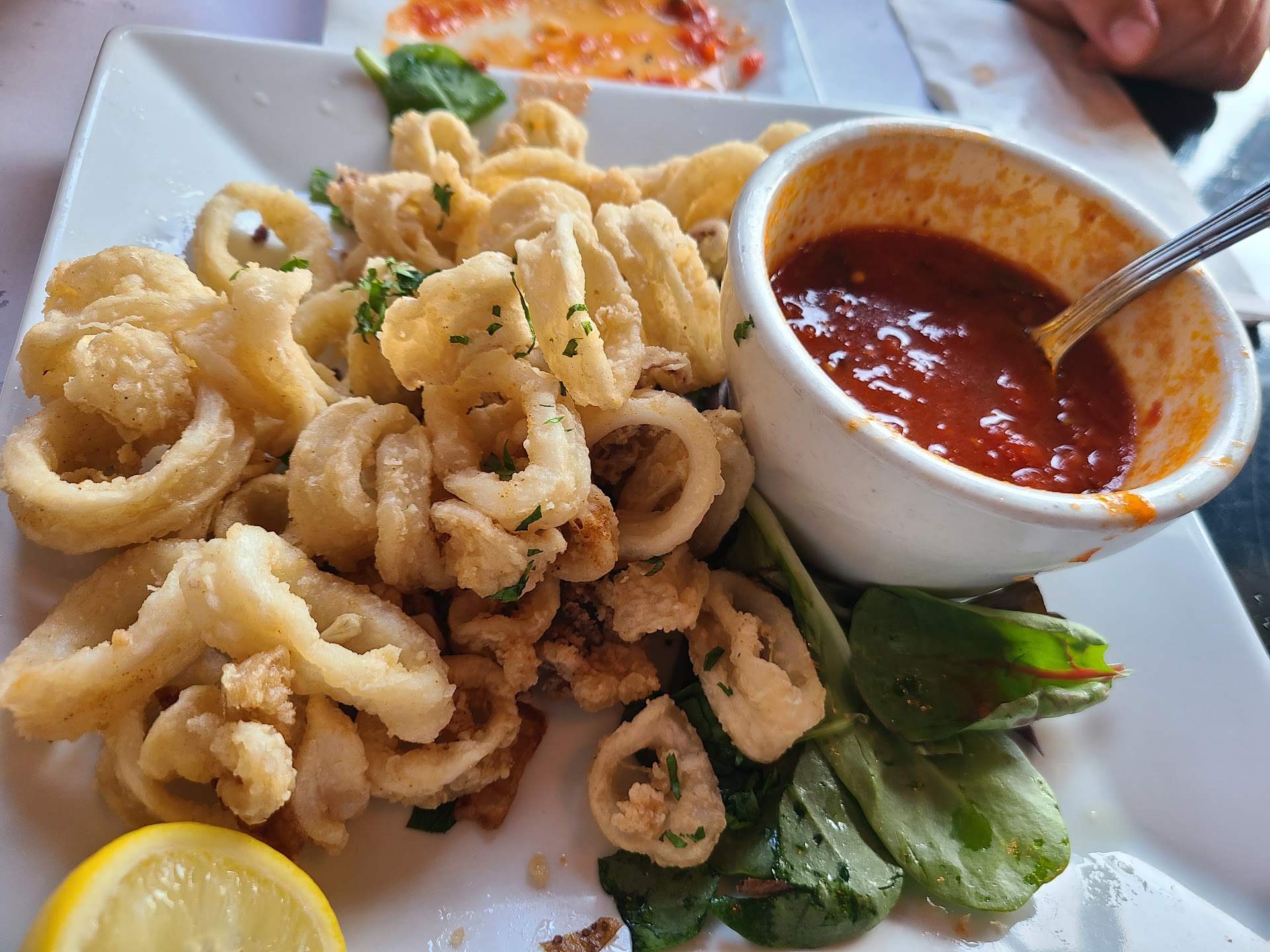 Read moreTwo big thumbs up for Main Street Cafe in downtown Northport Village. My fiance, son, and I were downtown and wanted a low key dinner. Even though we live close by, I've only eaten here once. The restaurant is very small, so even at 5pm on a Wednesday, it was packed. No worries, 5 mins wait. We sat down and we're greeted promptly by our waitress (don't remember her name, but very friendly). We ordered fried calamari as an appetizer. We already dug in before I took this pic, so there was probably half more of this. All 3 of us ordered burgers for dinner because I always heard their burgers were the best in town. They definitely lived up to their name. I included the check so you can see the very reasonable prices and the names of the burgers. All were cooked to perfection. I liked that the soft drinks were still pre 2020 prices and free refills. Also, I paid with credit card and there wasn't...
