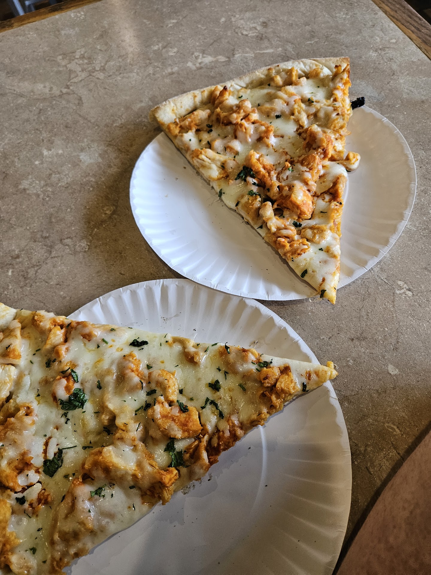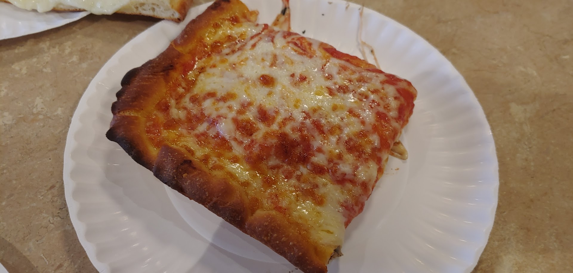The plain slice had no flavor (except for grease). Dough like cardboard and the same quality mozzarella as you get in frozen mozzarella sticks.