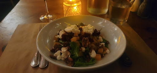 We went here after an exhausting day on a Tuesday, 3 weeks ago. The room with the fire place was cozy. The waitress was a joy and the food was yummy. I had the marinated skirt steak and my hubby had the fish and chips. A fantastic meal that made us come back last Friday night to try the burgers. They were a dry, tasteless and a huge disappointment. There are way too many, really great burger, places to be disappointed in a burger here. The waitress warned us. They would be dry if we cooked them to be well done. I told her if the meat was quality meat it would not be dry. But she forewarned us. No lettuce and tomato on the burgers at all. So dry I couldn’t eat it. Had to bring it home and give it to someone else, left there hungry. If Burger King can make a juicy burger well done, then so can you. You could certainly elevate the burger by serving it with the fries you serve with the fish and chips instead of the McDonald’s type fries you serve your burgers with. The waitress warned us they were going to be dried out if we asked for them well done and she was right. As we were leaving, it seems like everybody had burgers that night and everyone left half of them on their plate. Telling. Not a place to eat a burger. Especially when your bill is $85. Before tip and Burger King would’ve been tastier. And not a place to go on the weekends it’s too crowded and I think that’s the reason why the food was awful. As much as it’s busy during the week, it’s not insanely crowded like it is on the weekends and I think the chef is probably better on a Tuesday. The one on the Friday night certainly did not care how the food came out that night, If he/ she was a chef at all. Dry and burnt. The marinated steak though on that Tuesday night and that fish and chips… mmm mmm mmm. So good....