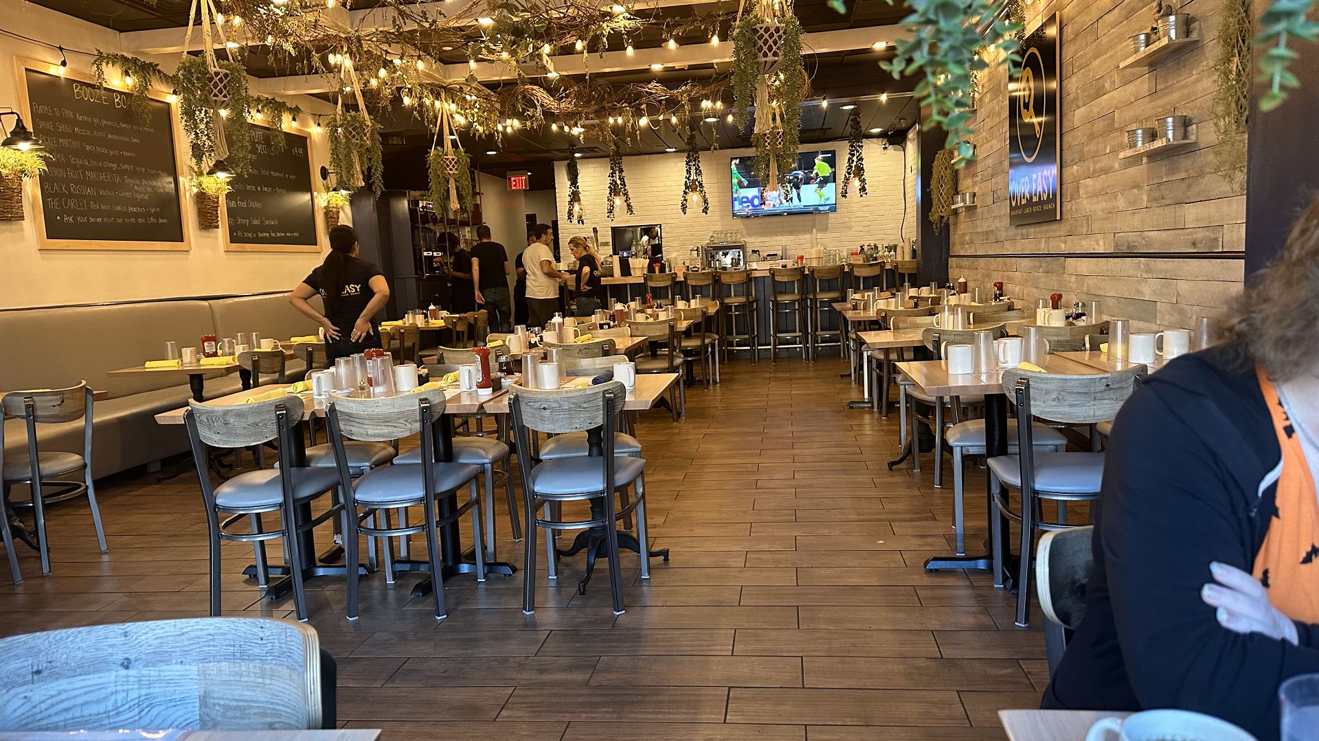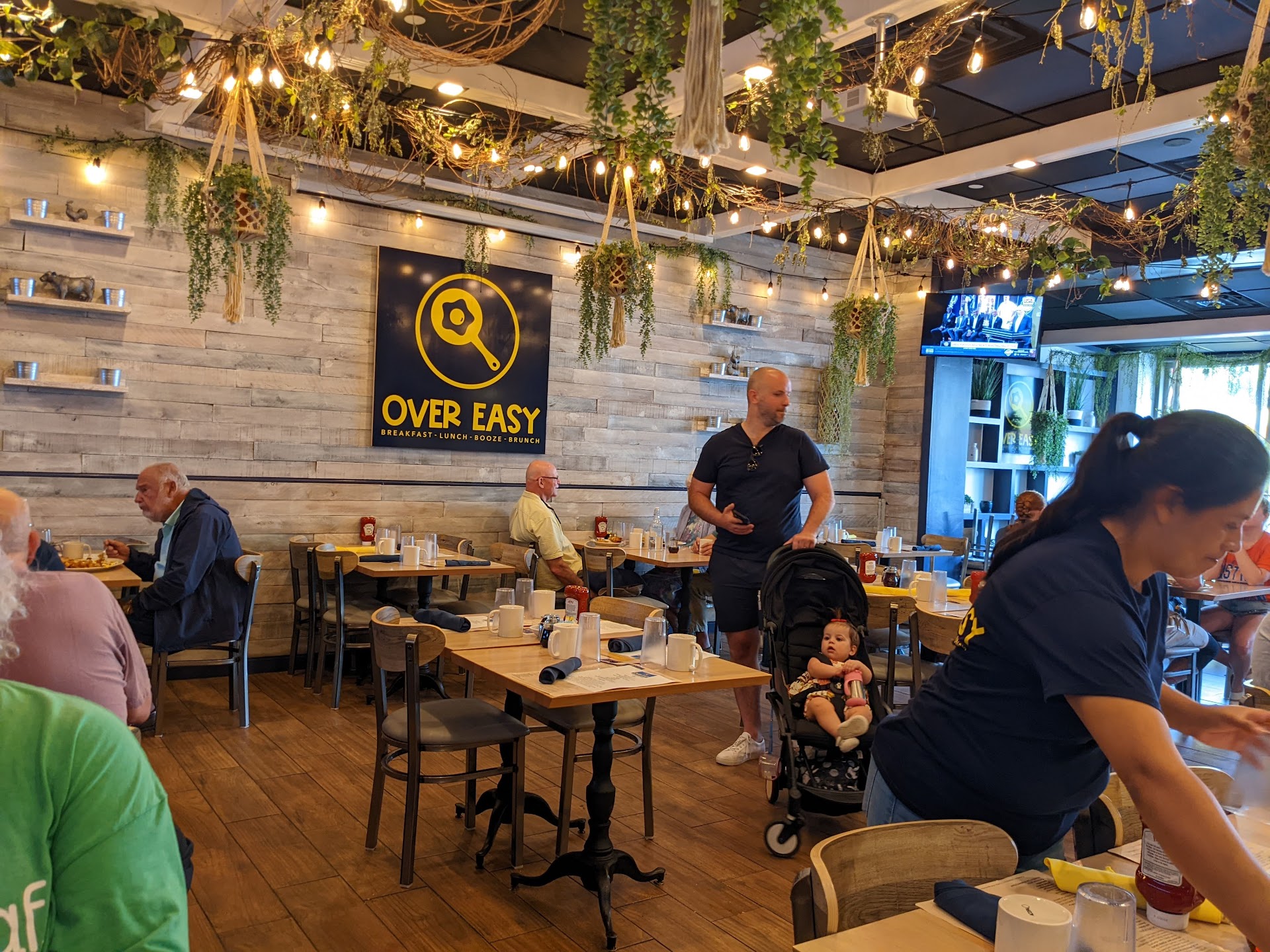 Read moreWe tried Over Easy for the first time over the weekend for Sunday Brunch around 12:30. While they still seem to be working out some kinks as they have only been open a few weeks for a smoother and more organized dining experience but overall we were pleased. They have a few tables outside but we sat inside, we were seated rather quickly but told the kitchen was backed up so they wouldn't take our order right away. The atmosphere is nice, greenery on the ceilings and an open bar/prep area to the back. They have a large menu, omelettes, eggs bene, waffles,pancakes, avocado toast options, salads, a few sandwiches and a huge chalk board on the left wall with daily specials and cocktails. The tables are close together but you do have enough room even as a party of 5 or more. They did take our beverage order rather quickly, water brought in a glass jar, we did have to wait for silverware they said they were getting it wrapped. Our party of 5 had coffee, a bloody mary which was a little bland and lacking any garnish or veggies but a nice large pour of prosecco. All the food portions were generous, you will not leave hungry. At our table we had the eggs in purgatory, spicy feta avocado toast and egg white omelets with turkey and avocado. A large selection of toasts to pick from and a large portion of home fries. Our server and the host that sat us and the food runner were all very friendly. We enjoyed our meal and look forward to dining again. Best of luck...