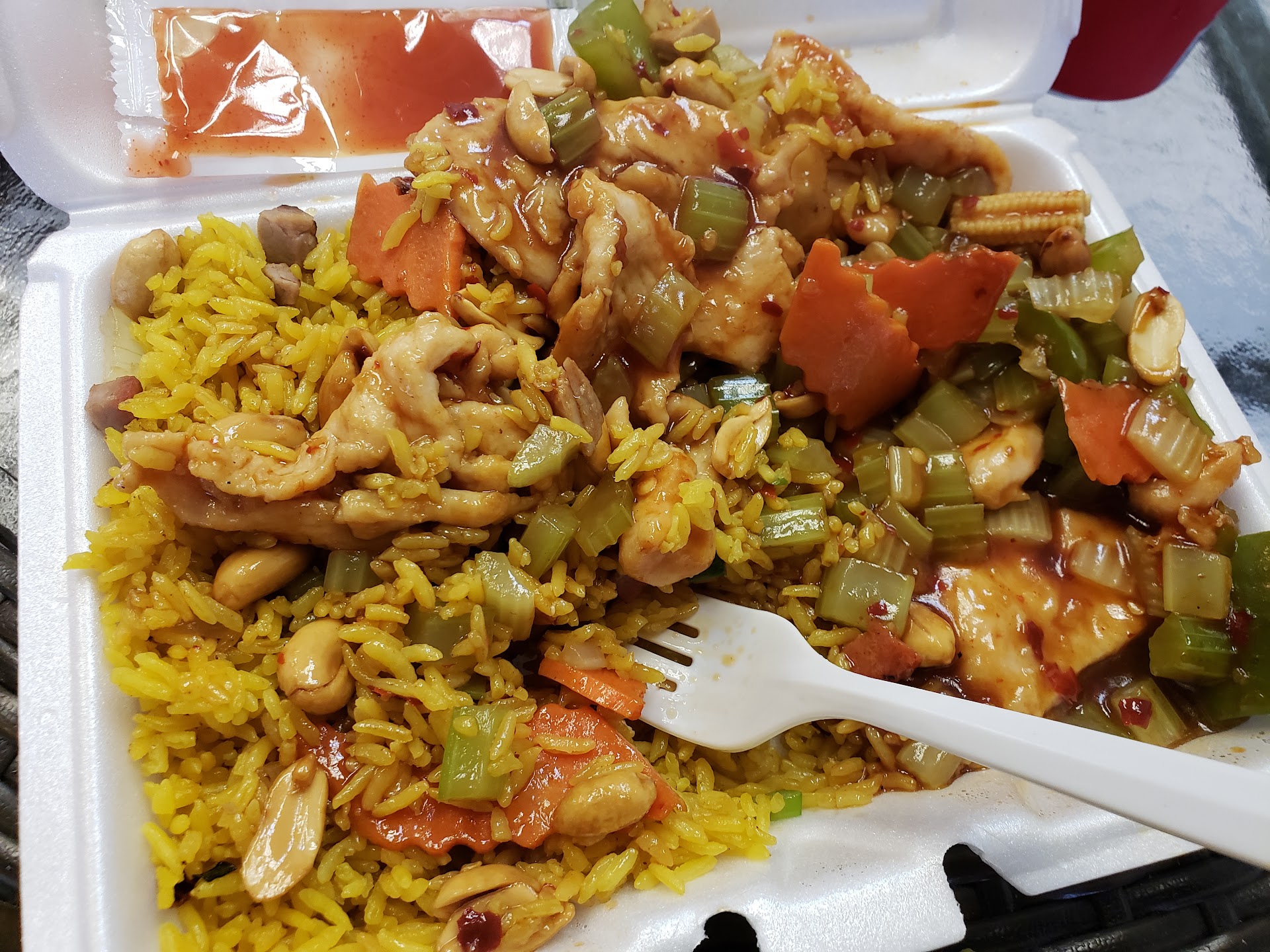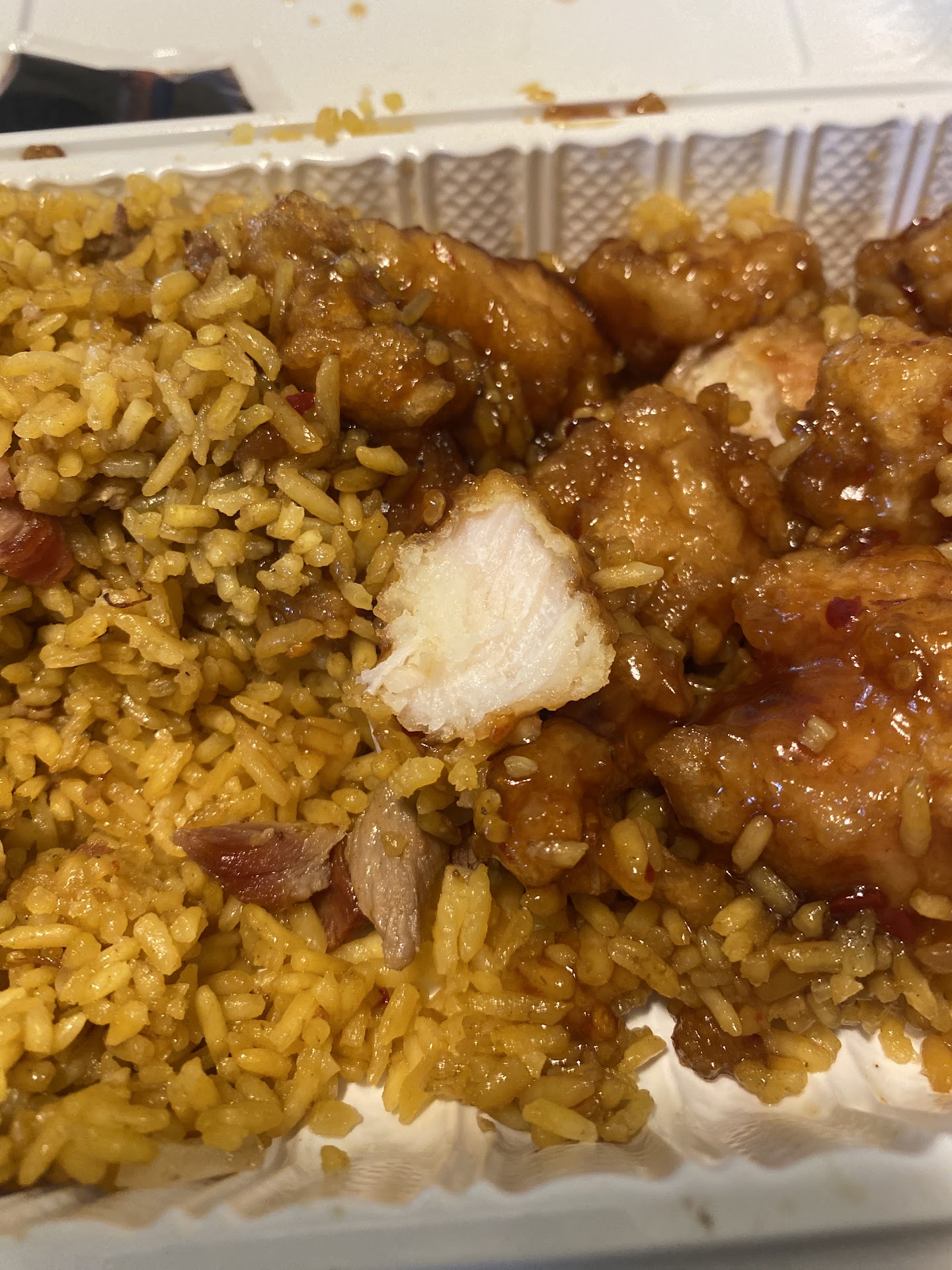 Typical Chinese takeout spot. Ordered ahead on the phone and the guy was rude. Parking lot was small but street parking is available. Food was okay, nothing special - I wouldn’t go out of the way to get it. I got lunch special that came with “pork fried rice” , but in the entire container, there was zero piece of pork- maybe it was just for the flavor? They gave me napkins from Dunkin’ Donuts- I get the money saving aspect of it, but really? Also, everyone else in the store who were getting their lunch got a can of soda with it, and the lady at the front specifically asked another guy “no soda for you?” But when I was picking up, she didn’t say anything. So I asked if my food came with anything, and she said “no” and pointed to the side table to grab my own fork. Maybe they got another menu item that came with a soda but….she was rude. Oh and it’s cash...