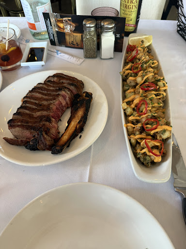 We had a party of 8 celebrating a birthday on a Friday night reservations made for 5:30- which when we arrived they "couldnt find" yet they were able to seat us. The interior is very esthetically pleasing. We arrived shortly before the "after work bar crowd" dispersed and the music and chatter was very loud. About 20 minutes after we arrived the bar noise subsided however, the background music was still too loud, (which seems to be an issue in many restaurants lately) guests shouldn't have to shout across the table to be heard or be sitting right beside someone to converse. Our server KENNY was incredibly attentive, and helpful with menu questions. He was very aware of ALL his tables. I watched him at other tables and his interaction with guests was exemplary. We chose a variety of appetizers and shared them. The onion ring tower was a huge hit, the calamari was spicier than we expected, but prepared well, our table also had the lollipop chicken which was very tasty. The NY strip was cooked to perfection. The duck was said to have been delicious. Bronzino was also very good however, the ribeye was extremely under seasoned, I had the pork chop which was nicely spiced perfectly cooked to medium, and came with house made potato chips which were the best I've had to date. Sides ordered in addition to our mains were the creamed spinach which was "meh" the broccolini -very undercooked and under seasoned. Sweet potato fries- nothing special and had no salt or seasoning. All the food was piping hot, a definite plus to the kitchen but also shows that Kenny didnt waste any time serving as soon as the plates were ready!