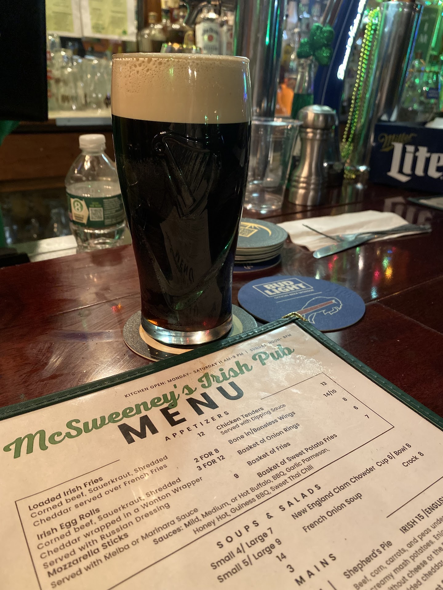 Read moreAfter hiking all day long in the Adirondacks we were hungry and tired. With everything else pretty much closed in town by 9PM except for Stewart's and McSweeney's, we popped in here for dinner. We were greeted by a lovely bartender who had excellent suggestions for food, drinks, and even had us excited for the Irish Road Bowling event in Indian Lake (count us in for 2025!). The owner, Dave, was more than hospitable. He is a storyteller, and a good one! I couldn't have asked for a better St. Pattie's Day - a fresh Guinness pint, yummy potato & bacon soup, and great conversation. This is the place to stop and eat if you are in Indian...