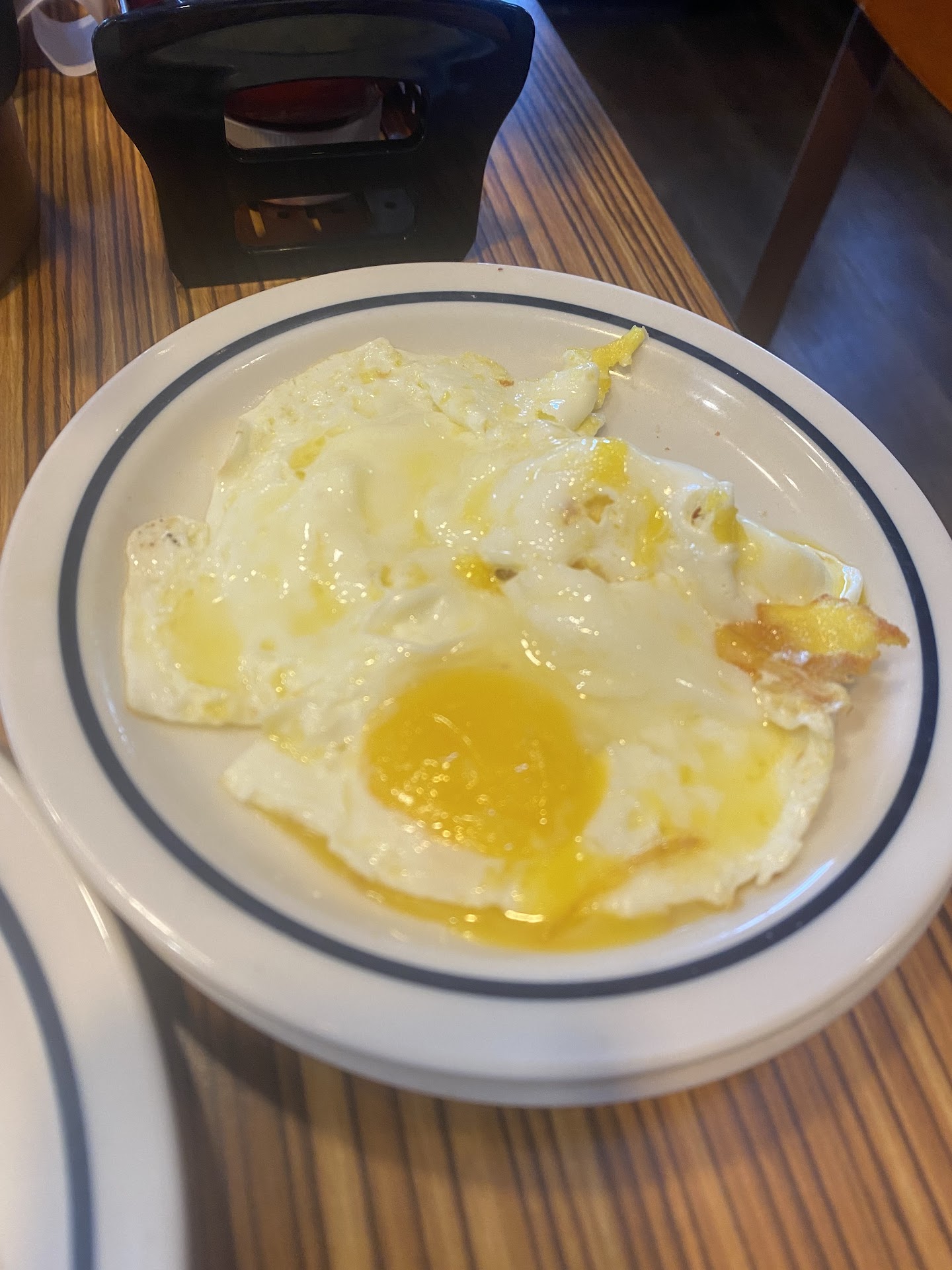 Read moreI was very excited to get out for breakfast after the shutdown. Figured let's get a really sugar filled breakfast and splurge. They take your number and text you when your table is ready. Great. We got the page and sat down Noticed that the seating was adhering to the social distancing. Great. After seated we realized the table was dirty, eww. Not great. The waitress came over to take our order, we explained the table was dirty, she apologized and quickly cleaned it. Great. She was fantastic, friendly, made eye contact and small talk. Great. They are only using plastic disposal silverware. Would have preferred a real fork, but not a deal breaker. Coffee was good, she brought out flavored creamers. Great. Orange juice sweet but a little to pulpy for me. Just a preference nothing wrong with it. It was nice and cold. Great. I got French toast with strawberries and bananas on top. Mmm, can't wait! Sadly it was cold, the French toast was barely room temperature. Bad! I don't think it was made in the last hour. It was rubbery and kind of chewy. Bad! The strawberries were frozen. Bad! Bananas were fresh and yummy. Great. Suggestion: don't put frozen strawberries on what should be hot French toast. My boyfriend got an omlet, hasbrowns and toast. The cheese wasn't melted on the outside but he said it wasn't cold. Great. Toast didn't have any butter on it. Bad. He likes jelly so not a big deal to him. Great. We had many greats but the bads far out way them for me. Very...