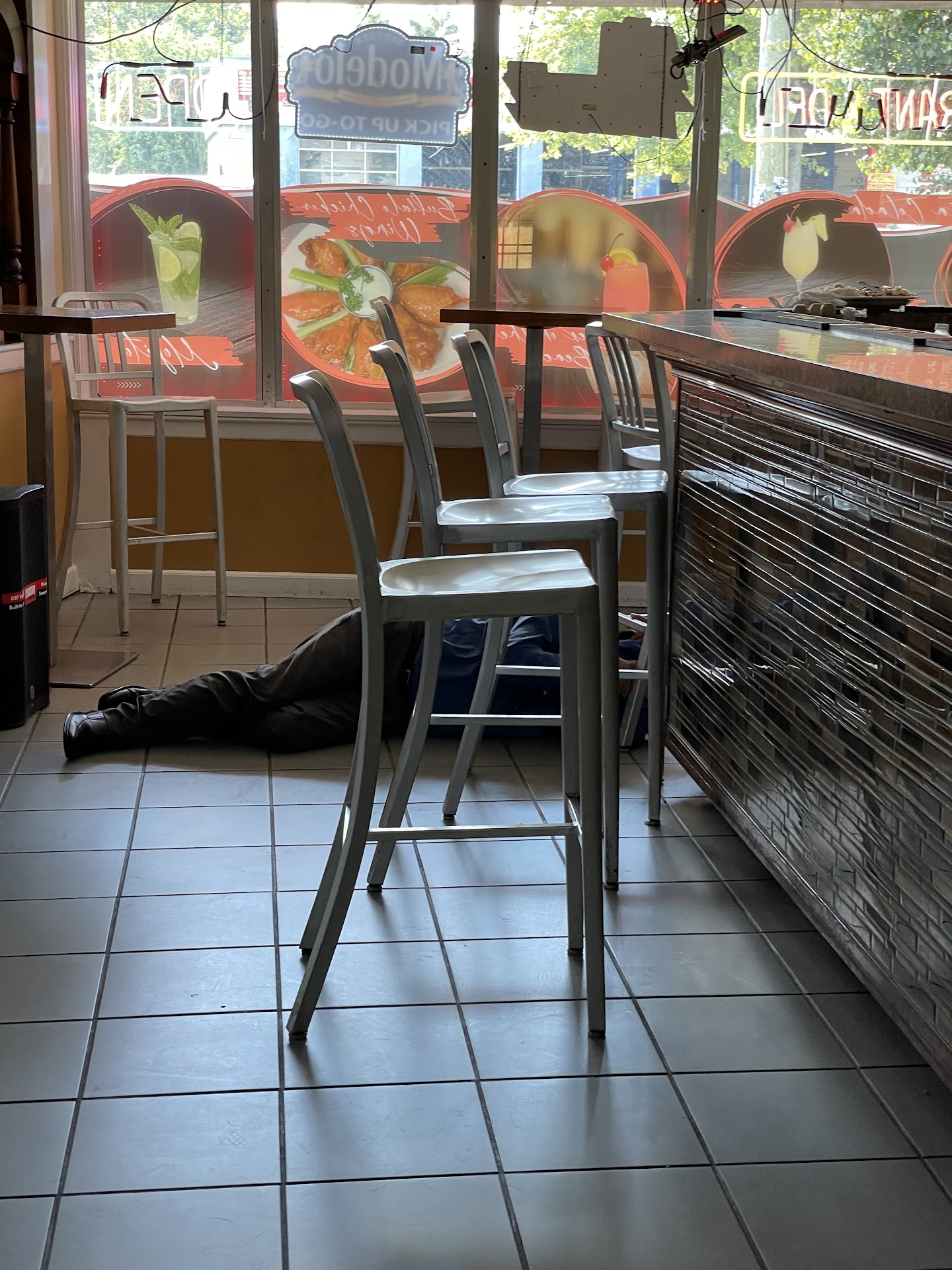 Drunk on drugs man on the floor in the bar area !!!! Noticed this after I had ordered my food and sat my mom down. I asked for the manager, no such person on site. Asked the girl who is behind the bar in this photo, and clearly over-served this person, if they were going to remove this person or call the police. All I got were giggles and dumb looks? Too bad I had already ordered my food. Well they must have changed owners because the food was horrible. Had no taste ordered Roast Pork Rice and Beans and what I thought was a Pastel, (it was wrapped in Foil and a plantain leaf) because that’s what I asked for, which turned out to be a Chicken Tamal 🫔???? Unreal!!! 2 wildly different things. Came here from Freeport with my 87 year old mom for lunch. Been coming here for decades through quite a few name changes. Very very sad to see what a dump and drunkard hang out this has become!! Will never ever be back here again. Hopefully this truthful post will get the owners to make some much needed changes, including the Staff!! But I doubt it.