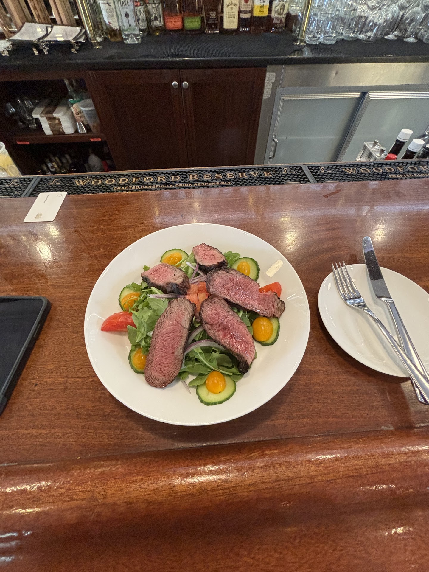 Read more06/05/24 Met a group of 5 for lunch, at Bayberry, in Islip. They have $25 Prixe Fixe with a nice choice of Apps and Entrees. Salmon Paillard, Warm Goat Cheese Salad, Bayberry Chicken, and 2 Dry Aged Bistro Burgers were the Entrees that were ordered for our Meals. If a day of the week ends in a "Y", I'm ordering a hamburger, over 90% of the time🙂 As always, I ordered my burger, Medium Rare, no rabbit food, no accoutrements, on the burger, but sometimes on the side, please toast the bun, and Cheddar Cheese. First one came out way more than medium, but Kim, our server, gladly took it back. Second one came out more to my liking. The meat tasted good. Not my favorite, or in my Top 10, or 20, but all the same, it was good. I did not taste the earthiness that is usually present with dry aged meat. It ranks way up in the #20s level, but still a good bar burger. If someone was going there, and asked me if I would recommend the burger, I would not tell them to shy away from it. The bun was nicely toasted, and was a nice addition to the meat. The bun to meat ratio was a bit top heavy with the bun, but it was not a distraction. The French fries could have been a bit more crisp, but they were still more than palatable.. In the end it was just not in my Top Tier of Burgers. The others enjoyed their food, the service was very good, as it usually is at a Lessing establishment, and it was a nice lunch, in a pleasant atmosphere. They do a brisk Lunch business. So reservations might be in order as a precaution with any larger table. Believe or not, parking was sparse, at lunch time. The lots behind the restaurant were packed at lunch time. They do have a small area in the rear of the restaurant that had outside seating. Maybe next time we can...