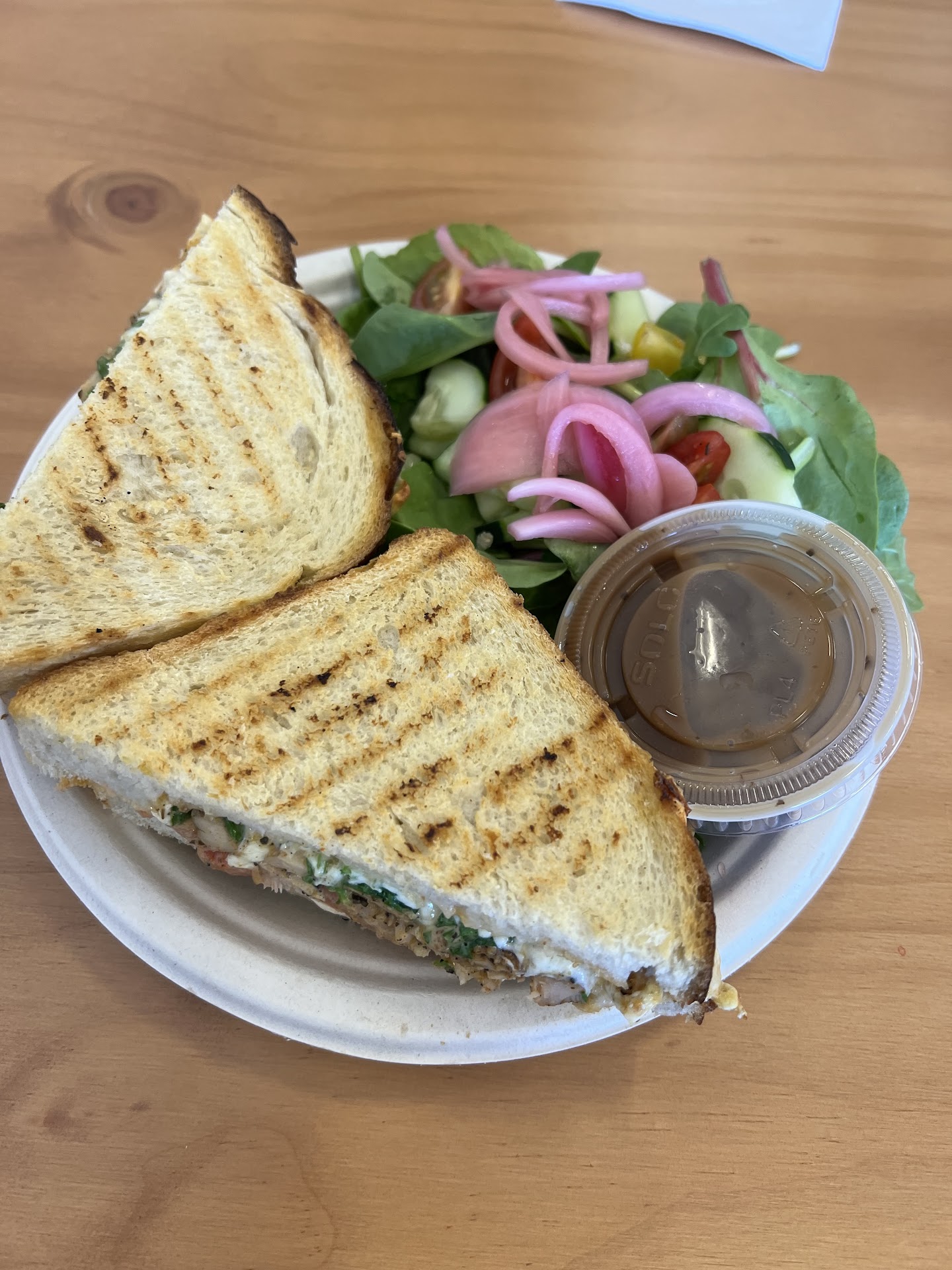 Ā Ā Ā Read moreSo far Iāve stopped in here to grab breakfast and now lunch. Both experiences have been more than satisfying and surprising. This is not your typical middle island style stop. It has Brooklyn vibes and Long Island farm fresh style food. The coffee is good but Iām not a coffee aficionado so maybe itās great and I just donāt know it. Food is my forte and damn it was good. Portions were perfect and I was surprised by the reasonable price. Iām especially impressed by the side selection and availability. This visit I had the chicken sandwich with a side beet & fig salad and my husband had the Thai wrap with a coconut soup.