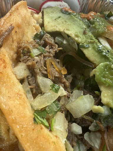 Read morei ordered birria tacos and i got a rubberband on it, when i called to make a complain they were making excuses i tried talking to manager they said they werenât there and didnât know when they were coming in , i asked for a refund and they said no but mind you i work at a restaurant and know the process and hazard this can cause , just unbelievable imagine a kid got this then what ? they didnât care as i mentioned that to them because my son just a no no, literally a...