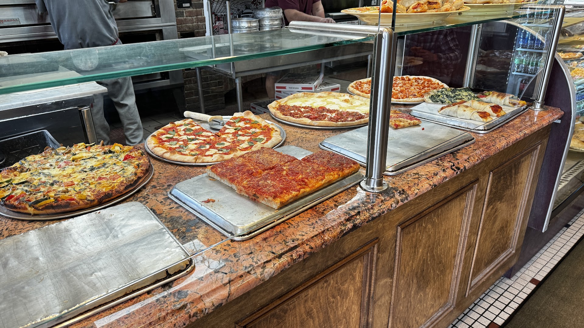 I'm a huge fan of Furci's store. The pizza place next door is just as good! Came in on a Saturday afternoon. The men working behind the counter were all so friendly! They showed me all of the different pizzas that the offer plus other menu items! The prices are comparable to every other pizza place locally. There's a tiny parking lot, but you should be able to find a space.