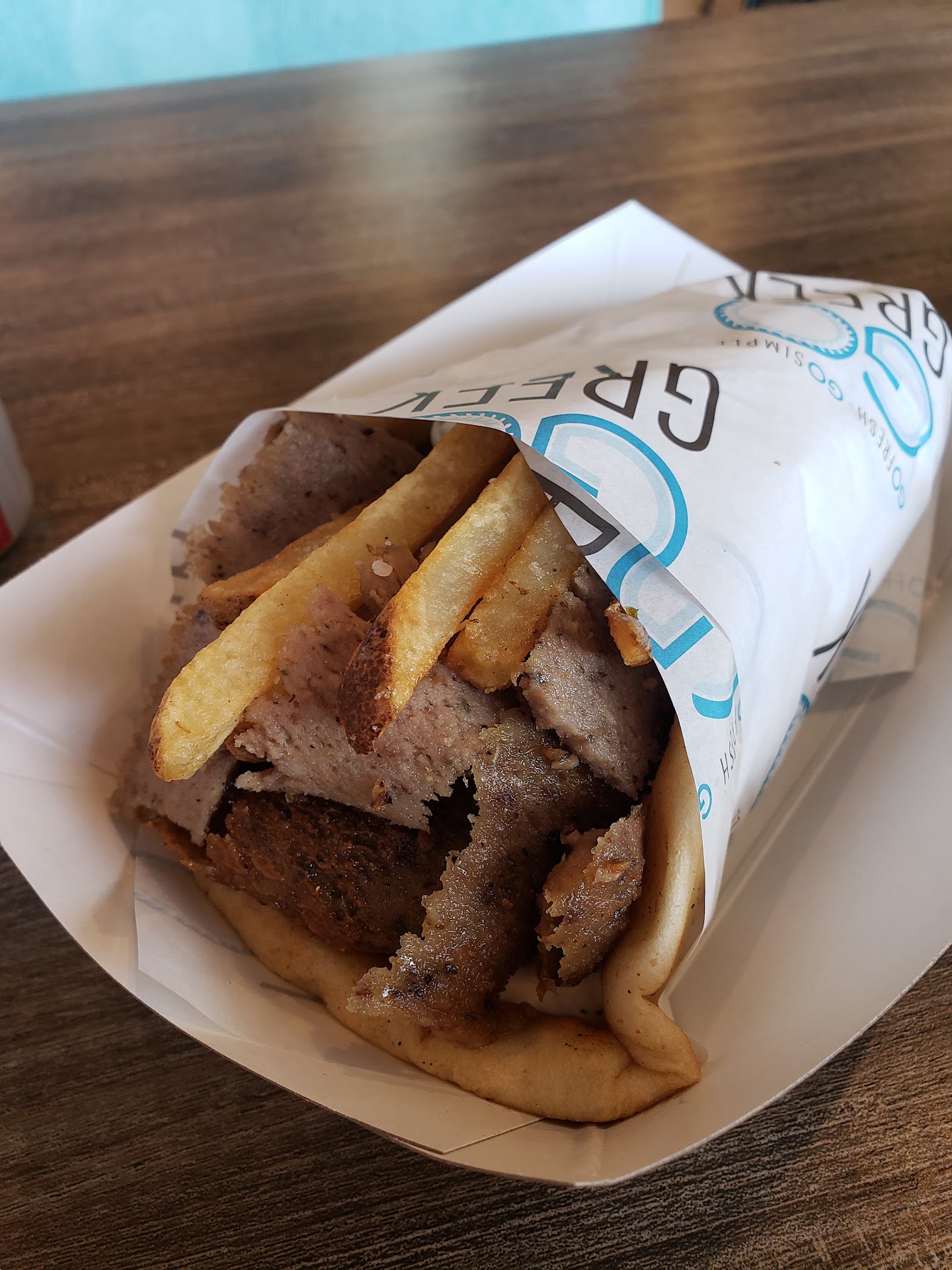 I was met at the door by who I think was the owner, who kindly held the door for me. I went to the counter where Kylie took my order and explained how to order what I wanted. She was very helpful. I ordered the lamb gyro combo with fries and drink, which came to Under $14.