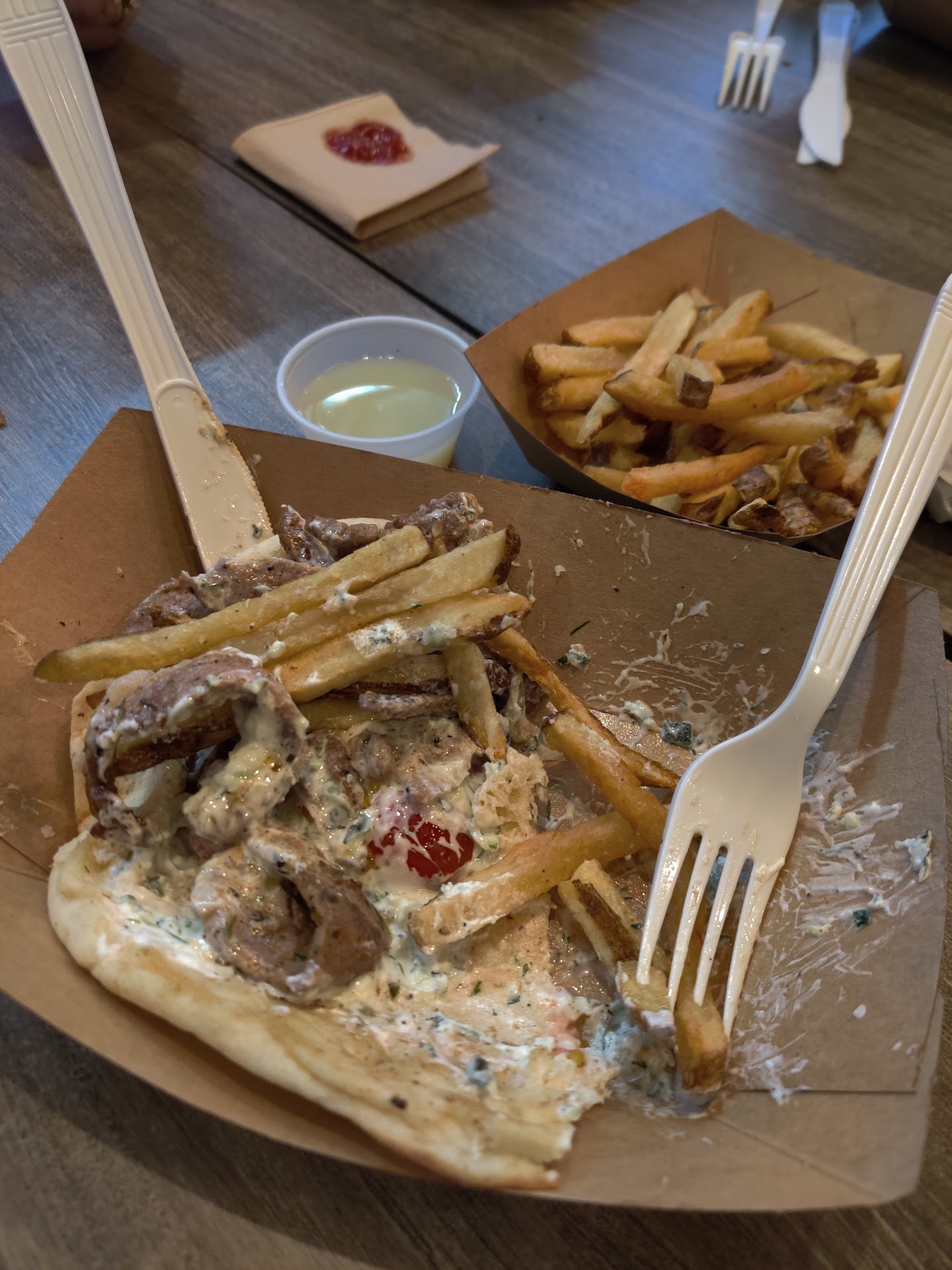 Read moreFirst time here. Saw it on the way in to Meat Farms. Went home, looked at the reviews, then decided on Online ordering: excellent. Everything ready when I showed up: Yes. Paid online during the ordering so I was able to just pick up and go. No receipt signing. Got home to enjoy.... My wife got the rice bowl with beef lamb combo. She wished there was some lettuce in there. Maybe I ordered wrong. But she wished she'd have ordered the gyro. My son got the burger with feta, said he'd prefer the gyro next time. I got the gyro. Not the best gyro I ever had, but it was good. I'll get it again. Sorry, Mediterranean Snack bar in Huntington set the bar way up high.
