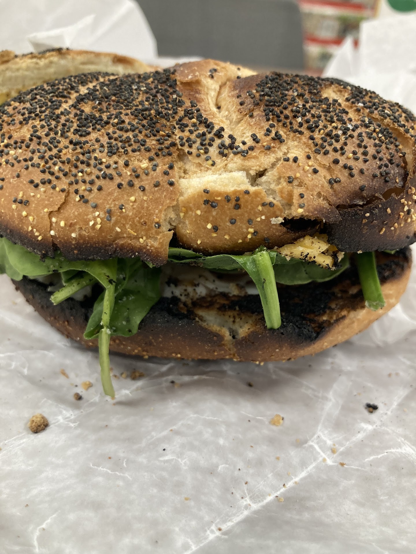 After waiting 20 minutes, while watching people stand around behind the glass they finally started making the sandwiches.