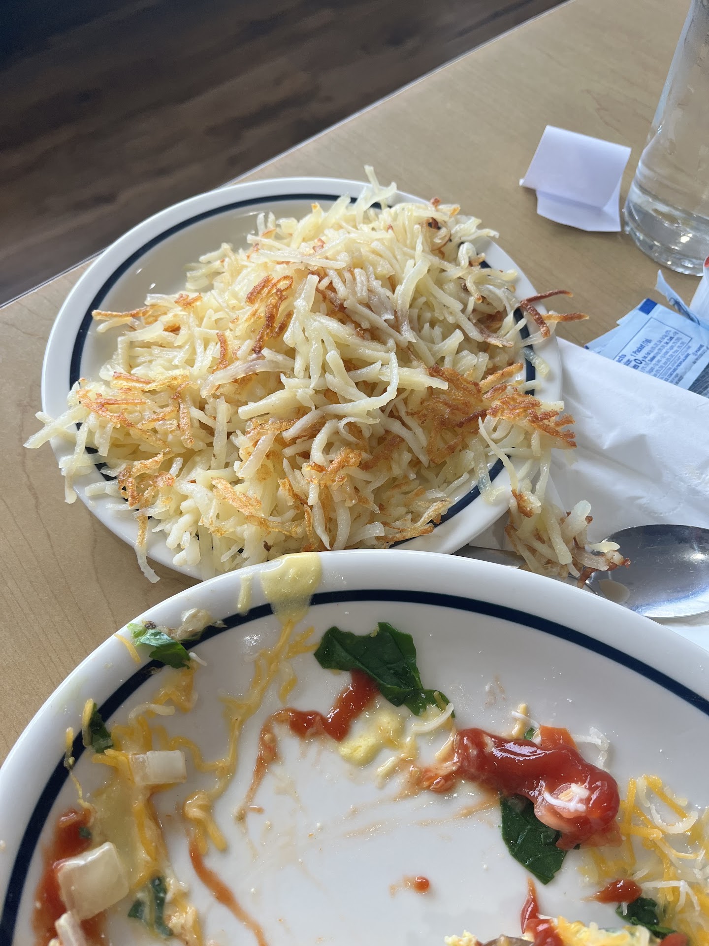 Our server was Jennifer and she had a bit of a nasty attitude to her. May not have been intentional, but her tone was off. She charged my friend for two grilled cheese sandwiches at over 14 bucks each and charged her the equivalent of a ham and fried egg sandwich because grilled cheese was not an option on the menu. At most, she shouldâve been charged toast as a side and no reason she should have been given two full sandwiches. My spinach and mushroom omelette was mediocre. Some of the mushrooms were not even cooked. How do you screw up cooking mushrooms? The server completely forgot my side of hash browns. I wish I never mentioned it because these hash browns looked violated (picture attached). When life does not imitate art. She left this thing behind without hesitation on the table thinking it was fine. I had pieces of potato dangling on the edge of the plate like Spider-Man ready to risk it all. I have never went to one ihop that violated my hash brown the way they did. Every ihop I have ever went to has the hash brown rectangular and neat on the plate. I thought I had to interrogate this hash brown and ask, âwho hurt you.â Looking like somebody sat on it and adjusted themselves 5 times before serving it to me. I did not take one bite of that mess. I laid it to rest with a napkin on top and hope that they buried it in the back with a ceremony. Shouldâve played the trumpet for the hash browns. I am not coming back to this place again. The server also was very slow with getting back to us and checking on us. Definitely did not...