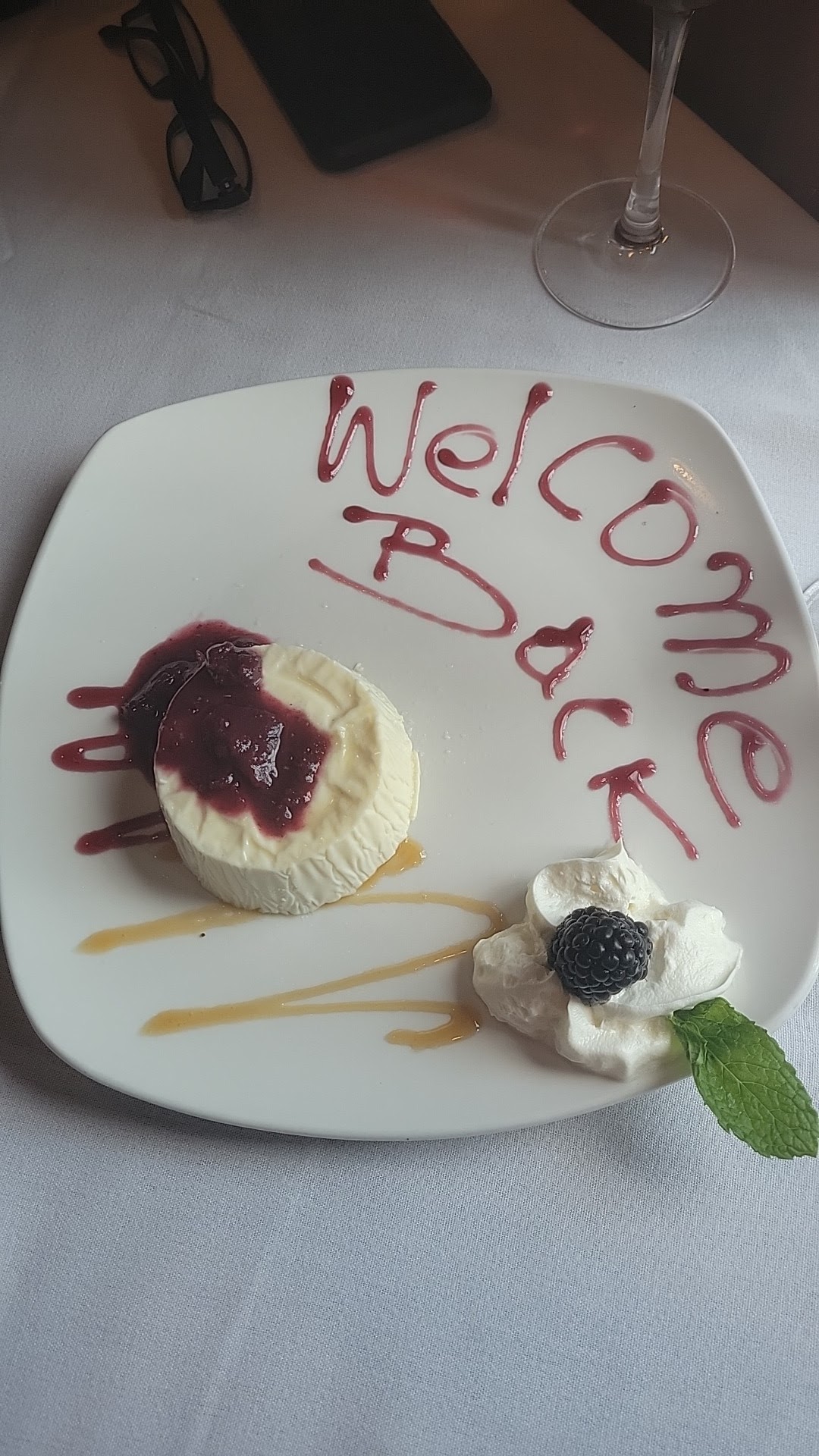 However, this is what makes this place so special. While we were there they came out with a complimentary birthday dessert for the table next to us and sang happy birthday. When my daughter was done, they came out with a complimentary crème brûlée and fired it up right in front of her! On the plate was written in raspberry sauce Congratulations! Then, we were served complimentary Limoncello as all customers are! These little extras along with the fact that the co- owner came out to introduce himself makes this restaurant stand apart from many others. They told us they opened two months before Covid started and it is obvious now why they have managed to stay afloat during the pandemic. It is their kindness, giving nature, wonderful food, and personal touches that makes this place work! This is now one of my go to places! Looking forward...
