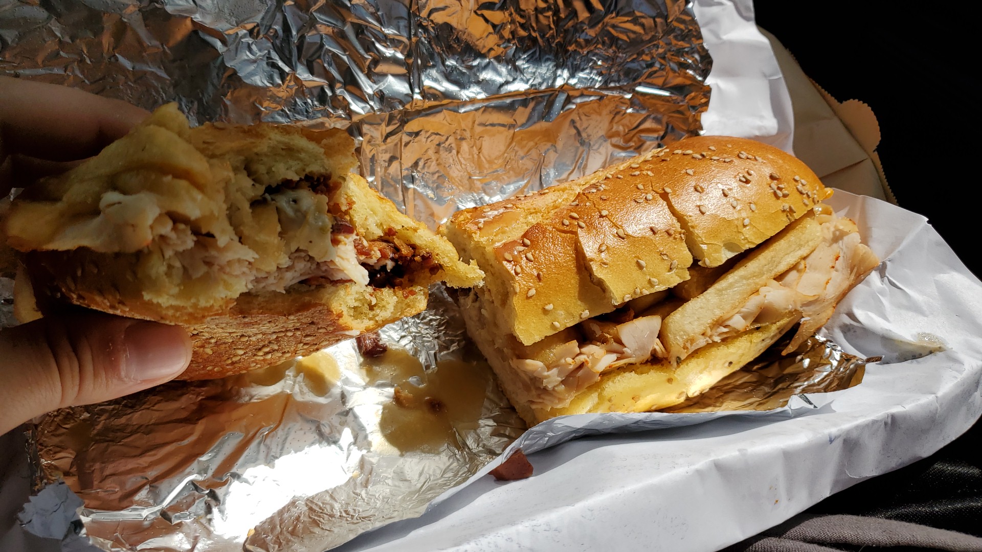 So, Giavonni compensated me with coupons for free sandwiches. Which I decided to use this morning. (Since they have failed to meet our minimal expectations for lunch, let's try breakfast...) Breakfast took over an hour to deliver to us, even after a phone call -- and arrived cold.