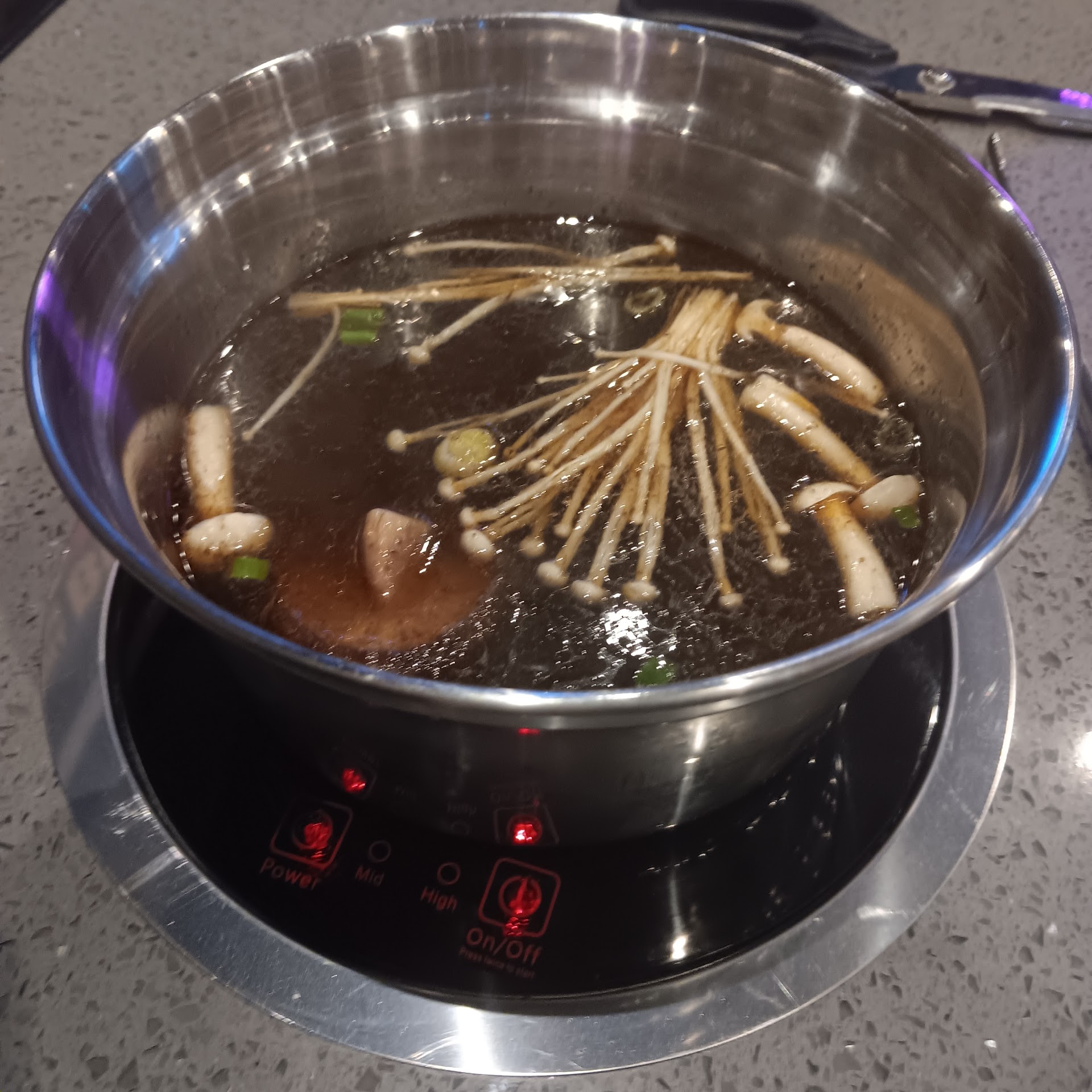 The food quality is also amazing. My new favorite is the pork cheek . The texture is amazing. The tablet makes for easy ordering. Food comes out in less than 10 minutes everytime. So I wouldn't recommend ordering another huge batch of food if you're still cooking because you will run out of table space . Finish then order again because there isn't much of a wait time. The mushroom soup broth is my new favorite. The other bbq and hot pot restaruant on mainstreet in bayshore soup doesn't taste like anything.So this will be my new regular local spot. I do visit kbbq restaurants across all of New York as a hobby and this one is decent for the area . I do wish they had more ready to eat options available but that's ok.