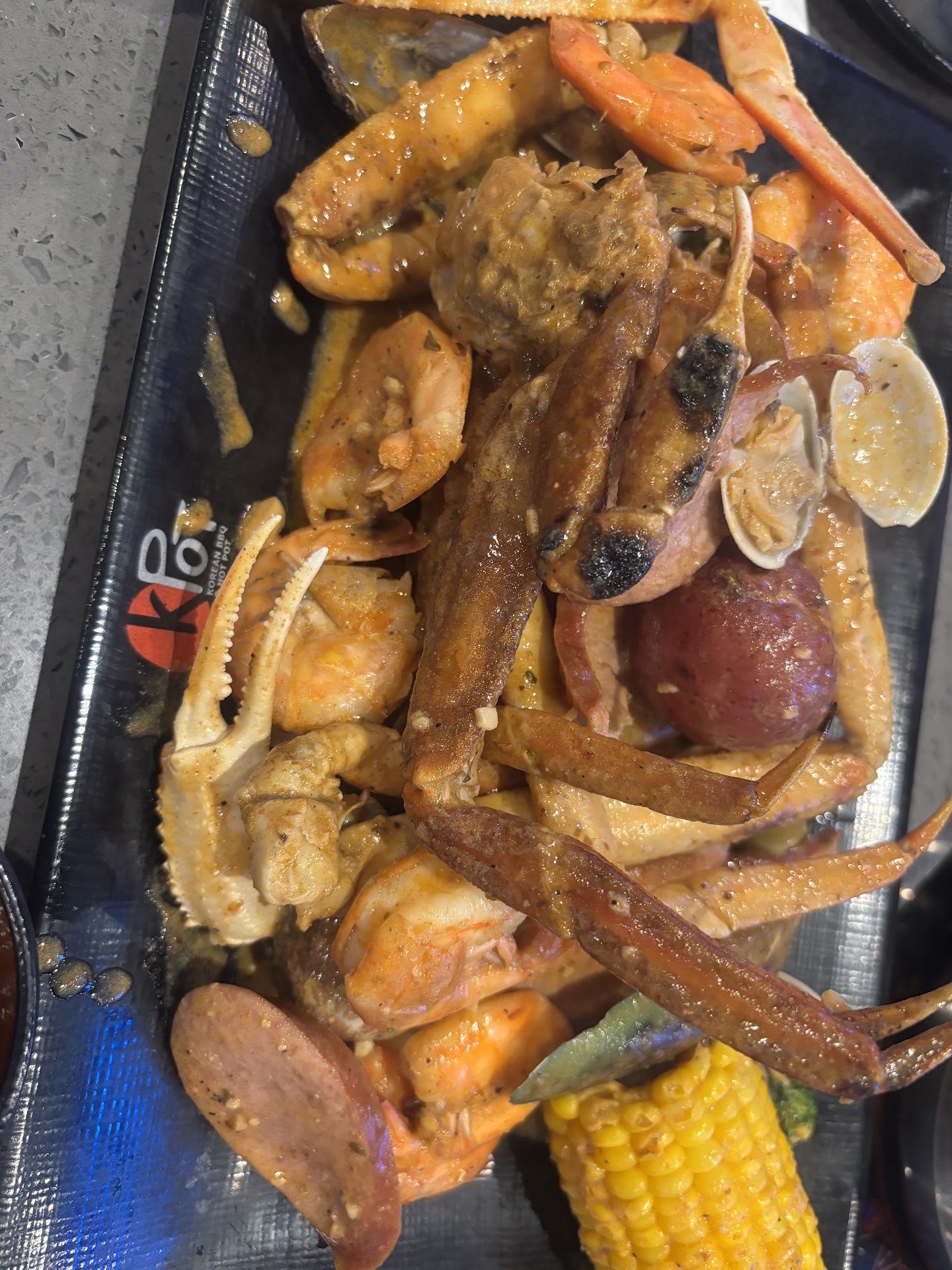 The BBQ food: We tried the chicken bulgogi, garlic shrimp, KPOT steak, garlic swai fish, king prawns. KPOT steak: What's nice about the KPOT steak at this location is that it comes with butter and rosemary, which the other locations I've been to did not have. Garlic swai fish: Good, but pretty salty. The flavor was a lot stronger than I expected. I could only eat half a piece of fish. This cooked fairly quickly and nicely though. Garlic shrimp: Not bad. One order only came with ~6 pieces. It wasn't too salty (like how the garlic swai fish was), and the garlic flavor wasn't overpowering. Chicken bulgogi: Good -- the marinade wasn't too salty or sweet.