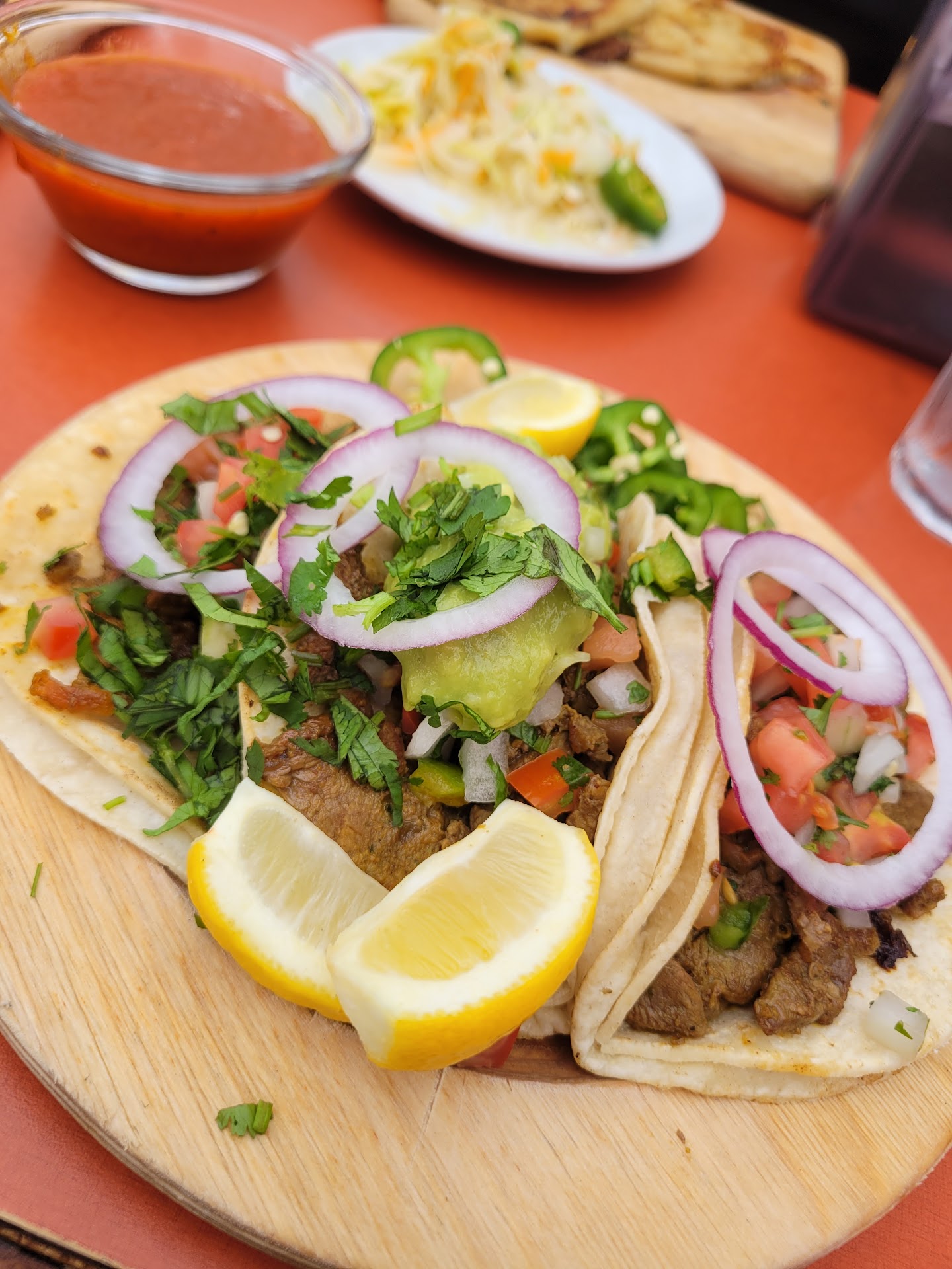 Read moreI found the food to be unique & delicious. They don't skimp out on ingredients & give you a good portion. The plating is also beautiful. A big location. They have a decent seating section inside & plenty of seating outside. So what I got from the flavors was not your typical Hispanic taste. It has an Indian influence to it (not complaining, I love the uniqueness of it). There is no pork here because it is a Halal spot. The chicken pupusa is made from ground chicken it seems with tumeric, the loroco is just loroco & cheese. Overall they were cheesy & not dry at all. The tacos de carne also was not your average carne. Had a hint of tumeric & came with red onions, jalapeños, guac & 3 wedges of lemon. I have no complaints about the food. However the service is pretty shady. I asked for water & they kept insisting on me getting one of their drinks or at least a bottled water. I said I just wanted tap water. Ended up getting charged $1.50 for the water. They charge you gratuity which supposedly doesn't go to the wait staff but to the owners themselves? They couldn't even explain where the gratuity goes to.