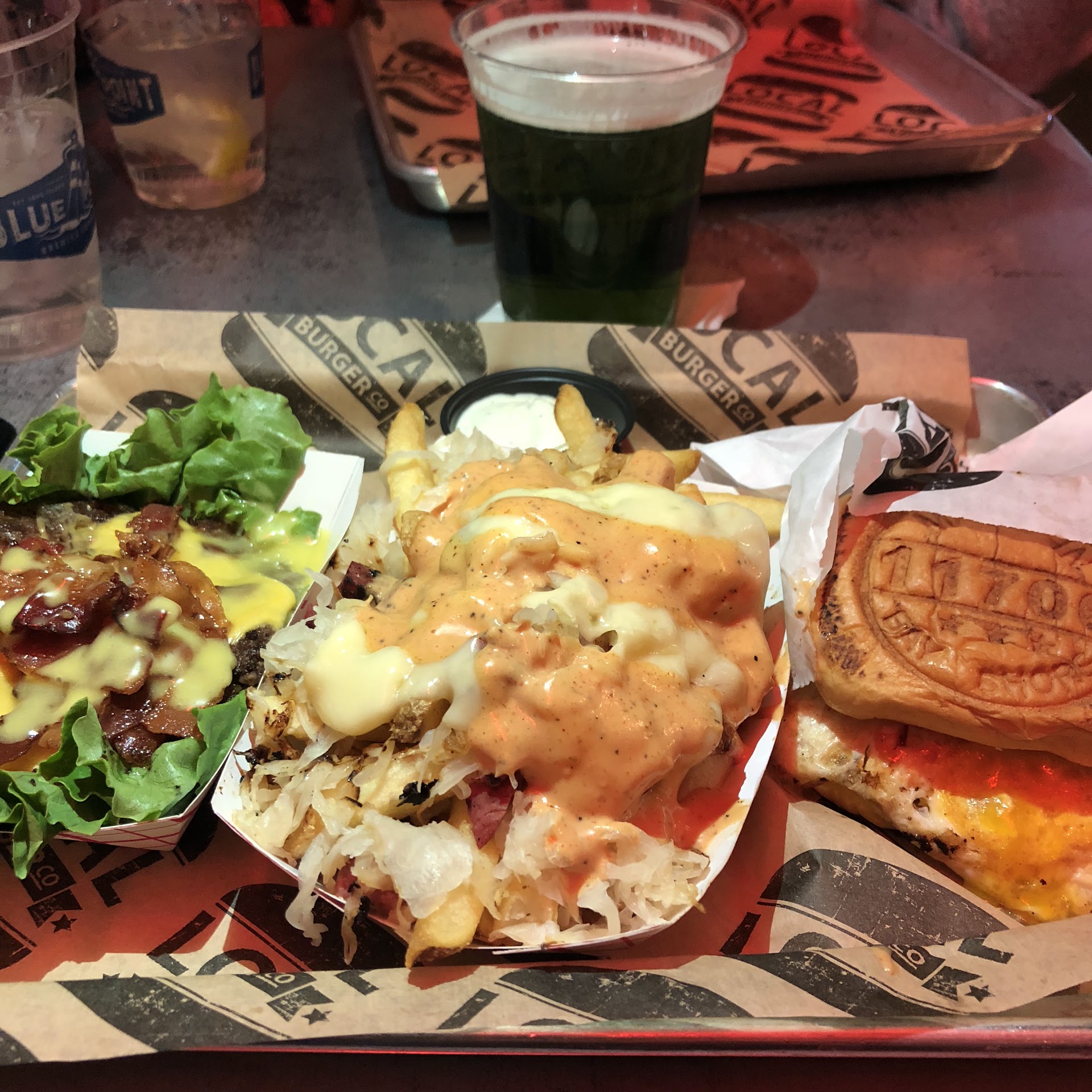We went to Local Burger Co. after the Bay Shore Saint Patrick's Day Parade on Saturday March 10th, 2018. Just like most of the people attending the parade, we had been drinking all day and were looking for someplace to go for dinner around 6pm. Because we've been to Salt & Barrel, Changing Times and Coastal, and were looking for something casual that we haven't tried, we decided on Local Burger Co. Due to the parade and the crowd, they had a hostess and a bouncer set up outside at the front entrance. We had to put our name in and wait... OUTSIDE... in the freezing, windy, cold for close to 30 minutes for a table. Granted, we were outside for most of the day, but that was while the sun was out and it wasn't that bad. Once the sun went down, the wind picked up, the temperature dropped and it was freezing out there. We definitely weren't happy about having to wait outside! Once we were allowed in, we were brought to a little two-seater right under a cutout that looks directly into the kitchen. What I witnessed should've immediately made me turn around and walk out. Again, I will state that I understand that it must've been a crazy day for anyone working at a restaurant on Main Street in Bay Shore after the parade. Being a chef, I've worked those shifts and I know how crazy things can get in a kitchen. So I will overlook the fact that the kitchen was a disaster. The floors were a mess and the counters were a mess and it looked like things hadn't been wiped down since the place opened. And I was actually ok with that. What disgusted me was the 5 cooks working the line that didn't have gloves on and were building burgers with their bare hands. And on top of that, on the other side of the expo line were a bunch of servers eating like they were at a buffet. And I didn't notice this just once, when I got up to go to the bathroom, when I got back from the bathroom and when we were getting up to leave, I witnessed the same thing every time I looked in the kitchen. This really bothered me but since we waited outside for so long, were frozen and starving, I made the judgement call to stay and eat. Thinking back on it now, I must've been pretty drunk to stay after witnessing what I did. For our meals, Lahna ordered a bacon cheeseburger no bun, I ordered the Hangover and we shared an order of the Celtic fries. For being manhandled with no gloves, our food was pretty good. The celtic fries could've used more corned beef though. And the egg on my burger was way over fried when I was hoping that it would come out runny. As far as the service, our waitress hardly came around. She was either busy waiting on other tables, waiting at the bar for drinks, or in the kitchen, probably eating her shift meal with the rest of the servers in the middle of their shift right in the open kitchen for everyone to see. Sorry Local, anyone with a frying pan can make a thin patty burger and put it on a Martin's potato bun and not risk catching a...